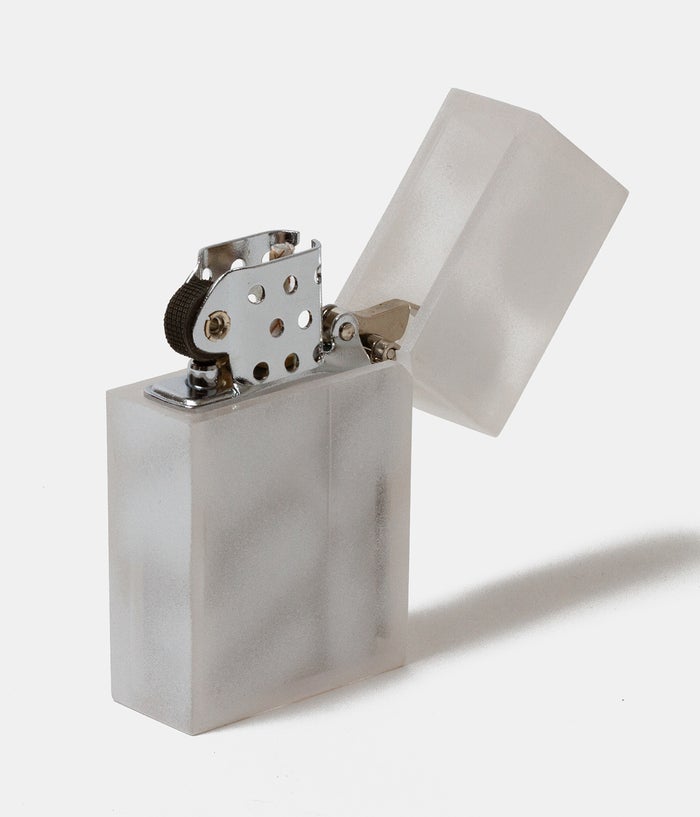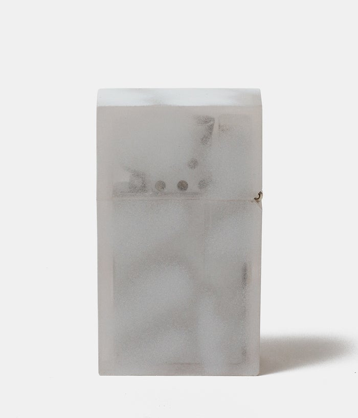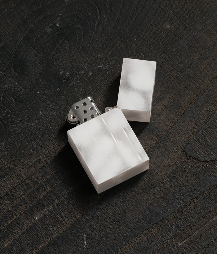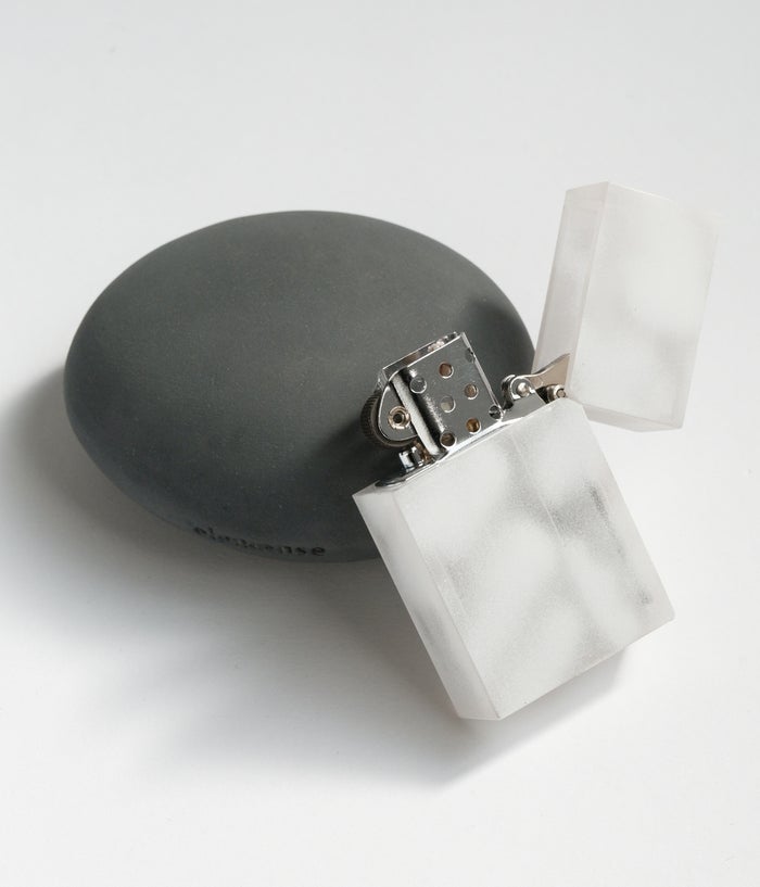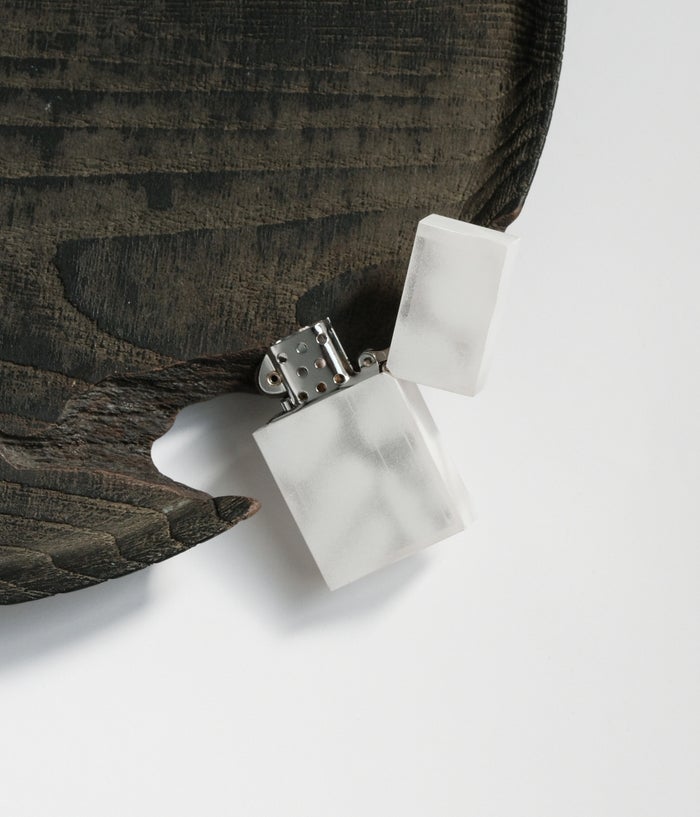 吹き付け塗装によるムラ感を生かして、クリアカラーのポリカーボネ―トケースにホワイト塗装を施しました。