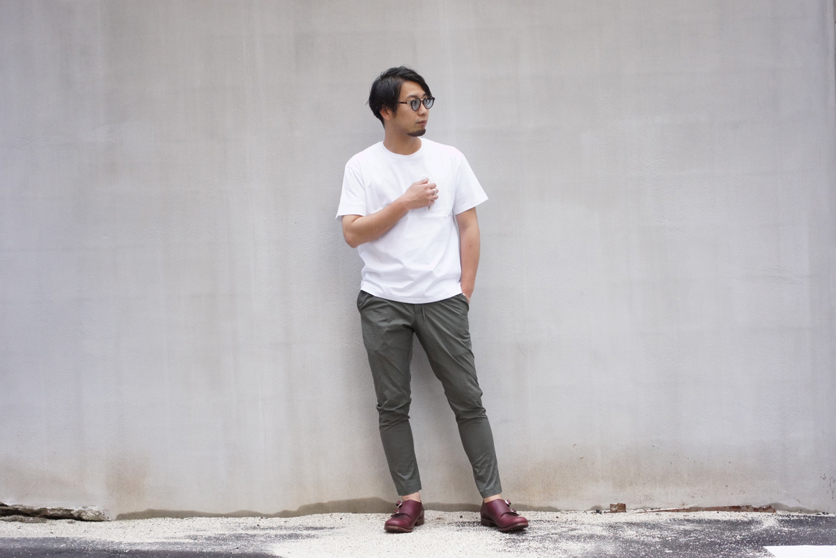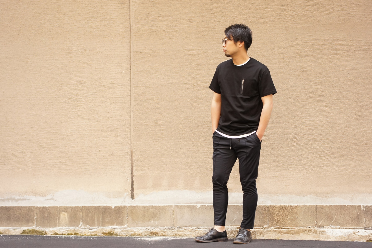 ポケットのマチは無くし着用した際のスッキリとした見た目はキープ、縦に走るジップの存在感も『服としての見た目』の理にかなっている。 こうして行き着いたのが今回のポケTのデザインです。 - 続いてベースとなるボディ生地