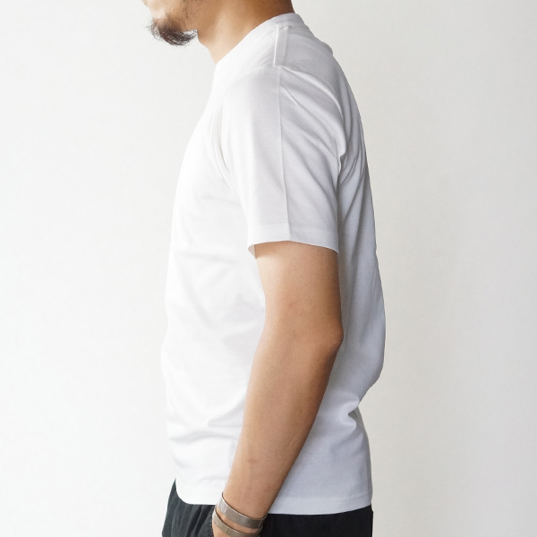 普段のサイズから計算すると2サイズUPのサイズ5(XL) いつもより”余裕を持って”着用したい方にはおススメ。 世に出ているビッグTEEと呼ばれるソレよりも肩幅はきっちり、身幅はちょいゆるに。 大人のビッグTEEをお探しの方、お待たせしました。