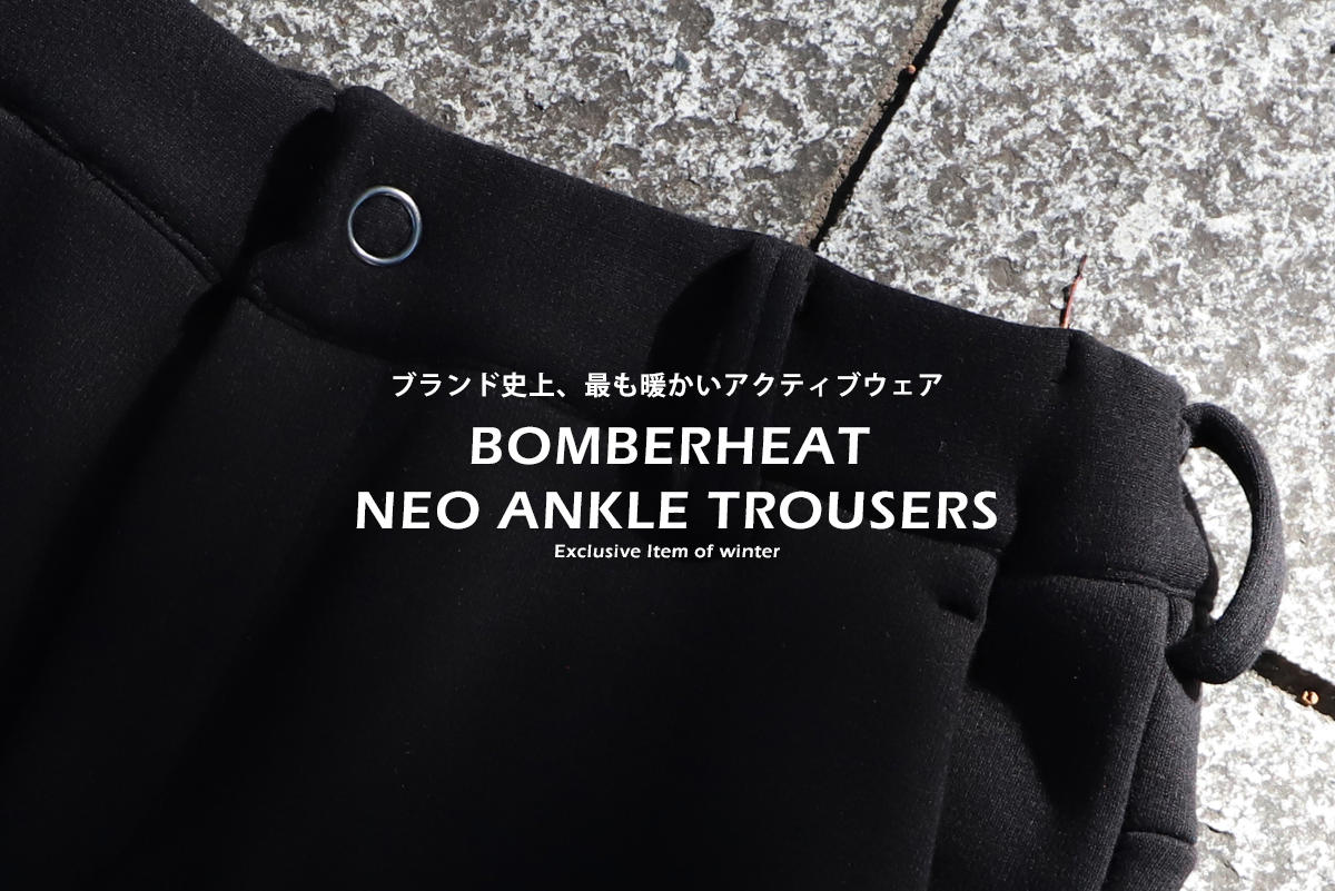 昨年大ヒットを飛ばしたボンバーヒート素材のアンクルパンツがアップデートして再登場。