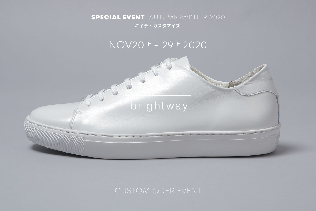 そのbrightwayのスニーカーのシグネチャーモデル Giichiをベースにカスタムオーダー会を開催致します。 - イベント期間中は全サイズのサンプルシューズをご用意させて頂きまして革・色をお好みでお選び頂き、カスタム箇所を指定して頂き受注生産(セミオーダー)にて承ります。