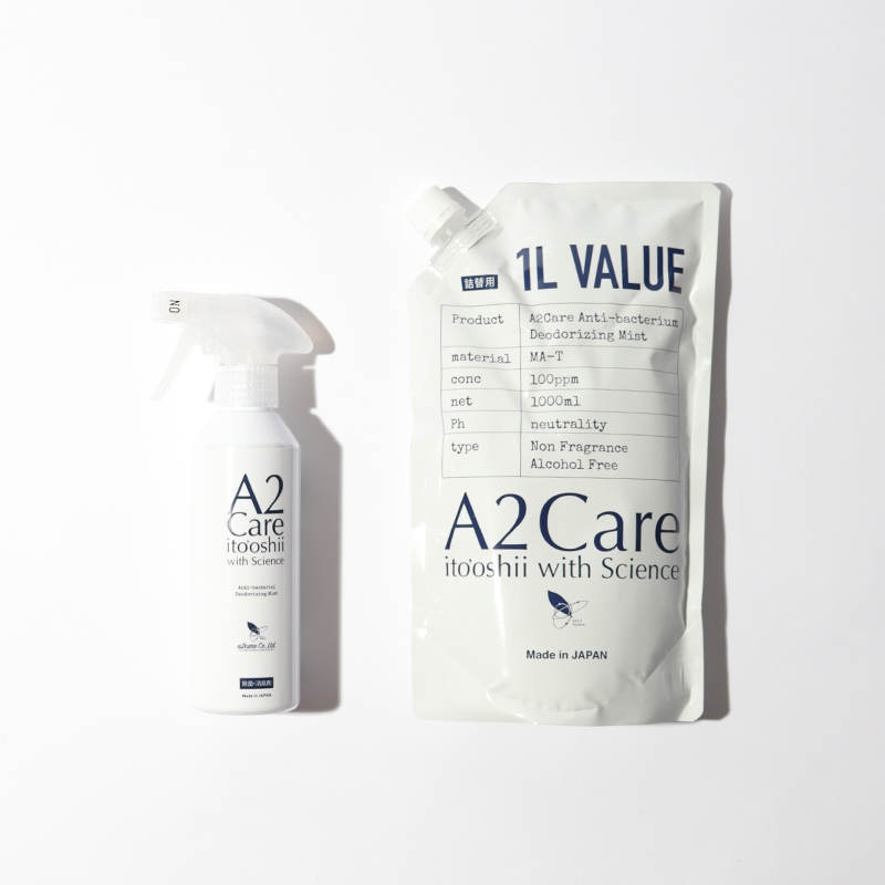 病院や介護施設の臭気を抑え、院内の除菌、ウィルス感染を防ぐなど、幅広い活用が注目されている。 ANA国内線・国際線の機内、空港和運治では長らくA2ケアが使われている。 医療機関での使用を前提に研究開発は続けられ、あらゆる検査をクリアした無色無臭の除菌消臭剤です。