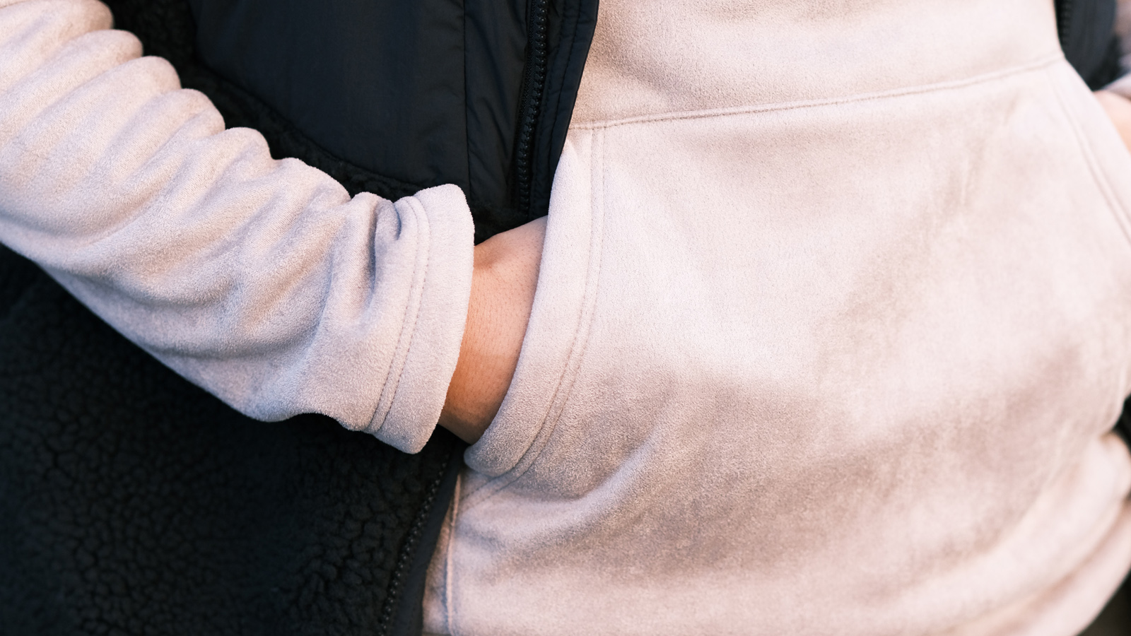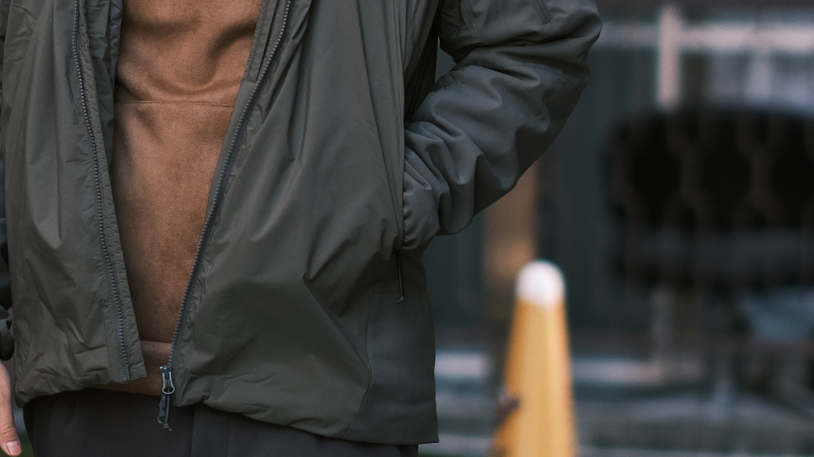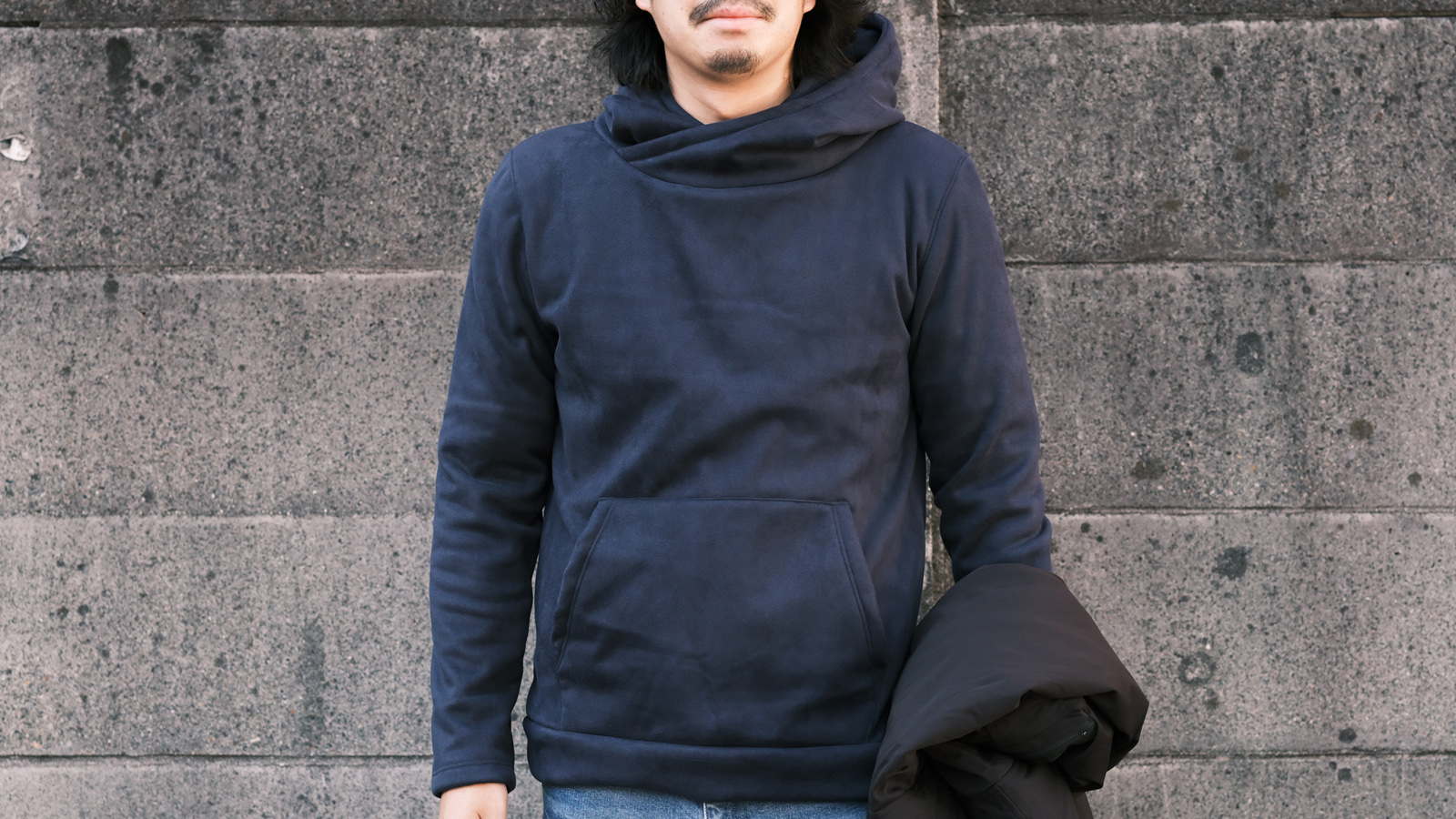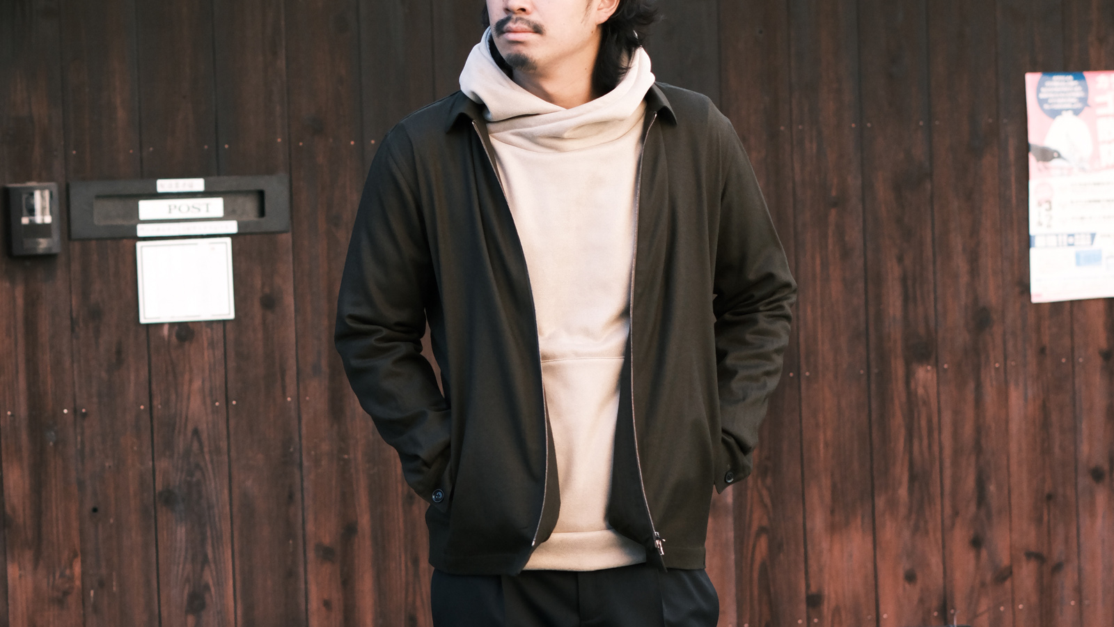 やっぱりパーカーにはデニムを履いて、こういったナイロン系のアウターを羽織るのは鉄板ですね。
