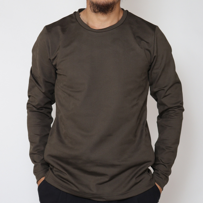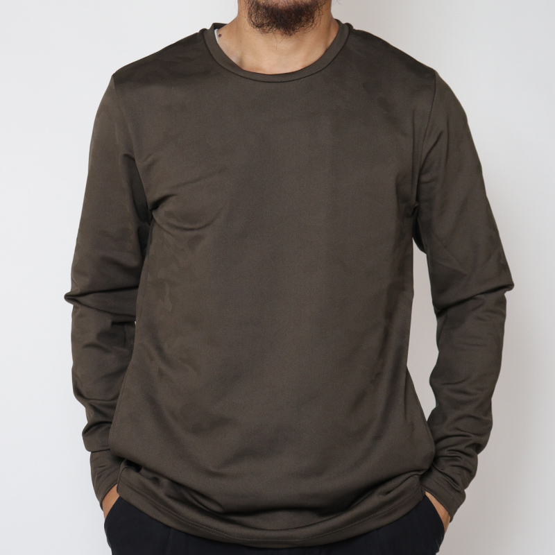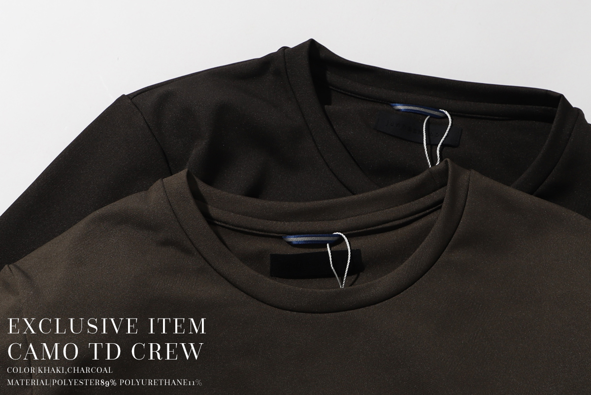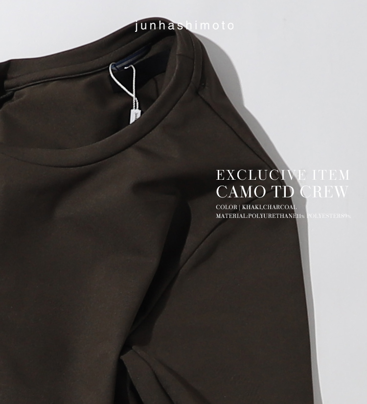 - 選んだ素材はジュンハシモト定番にして最も馴染みのある素材のひとつ”カモジャージー”。カタチは知る人ぞ知る隠れた名作、21AWに展開されていた「TD CREW L/S」を踏襲しました。