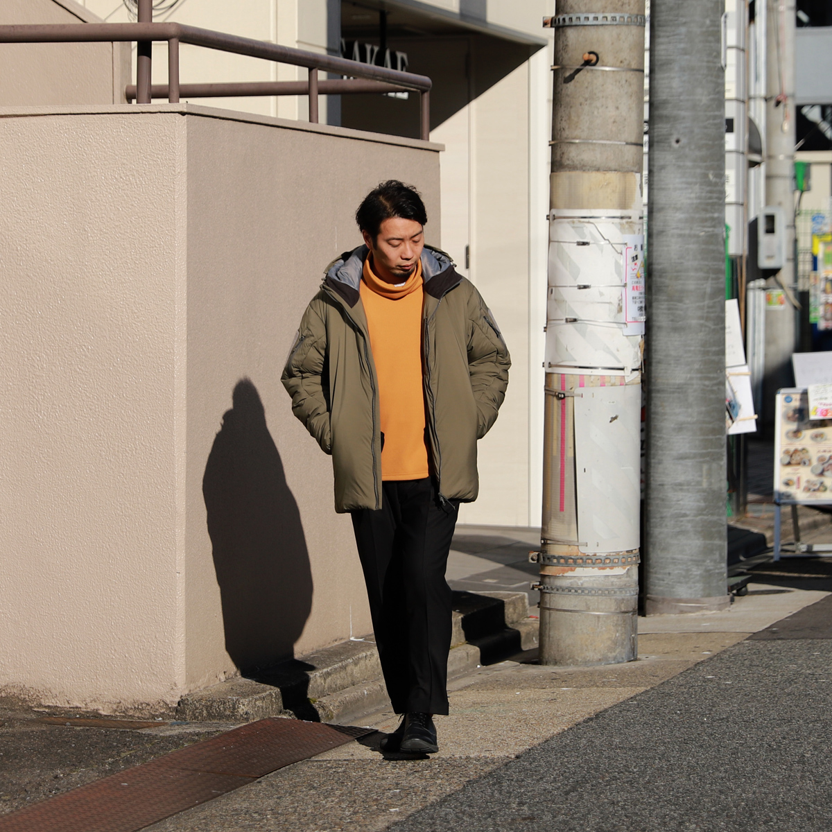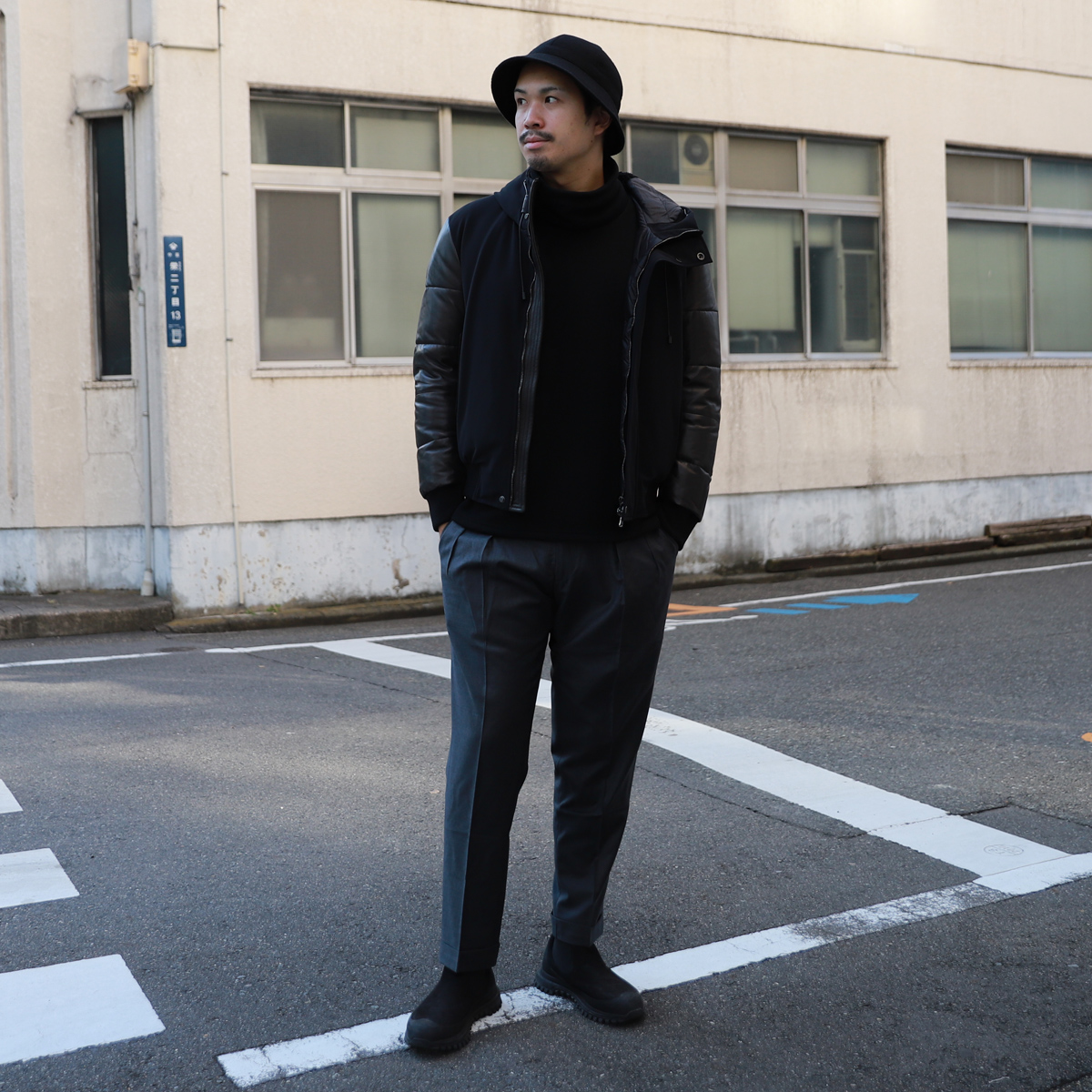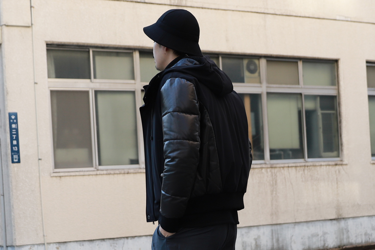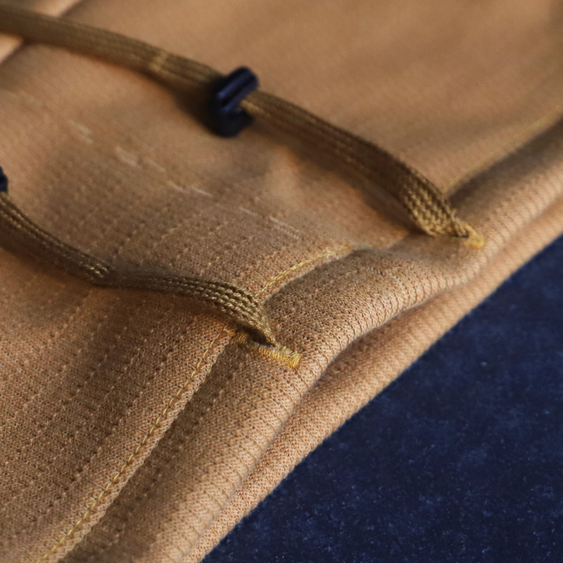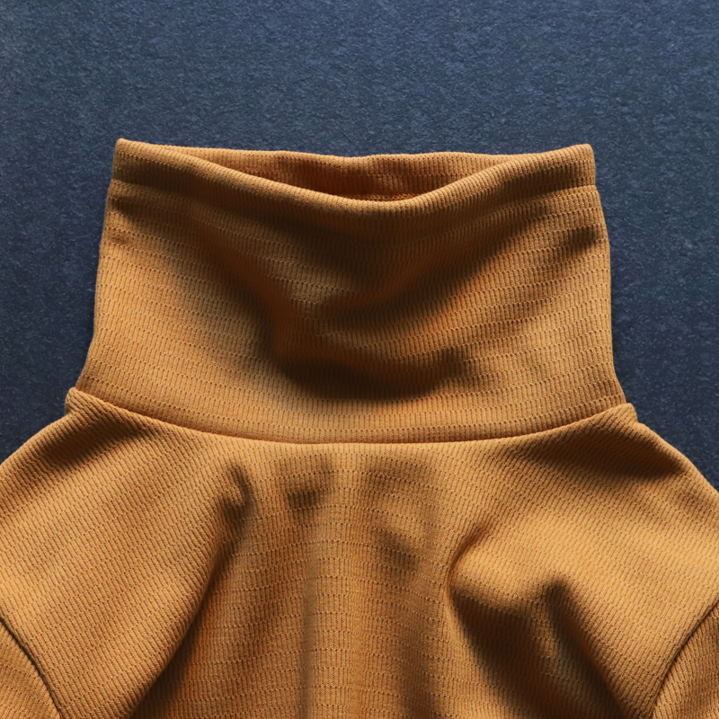 - ボンバーヒート素材を使って型のバリエーションを増やそうと思い、真っ先に浮かんだのがこちらのルーズネック。首元にボリュームが出ますので1枚で着て頂いてもサマになりますし、MA-1やレザー、コートのインナーに着て頂くとコーディネートのアクセントになるところが製作に至った理由です。。