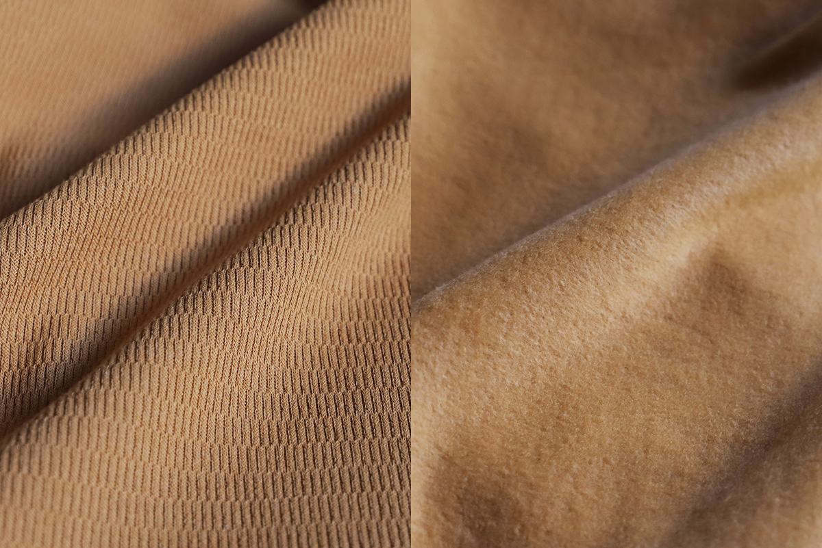 - 表面と裏面の触り心地にギャップがある1着。