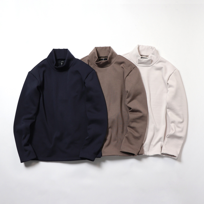 - 11月発売の第二弾は、タートルネックよりも控えめでクルーネックよりも安心感の程よいボリュームが魅力でここ数年で一気に着用する方が増えた印象のモックネックです。
