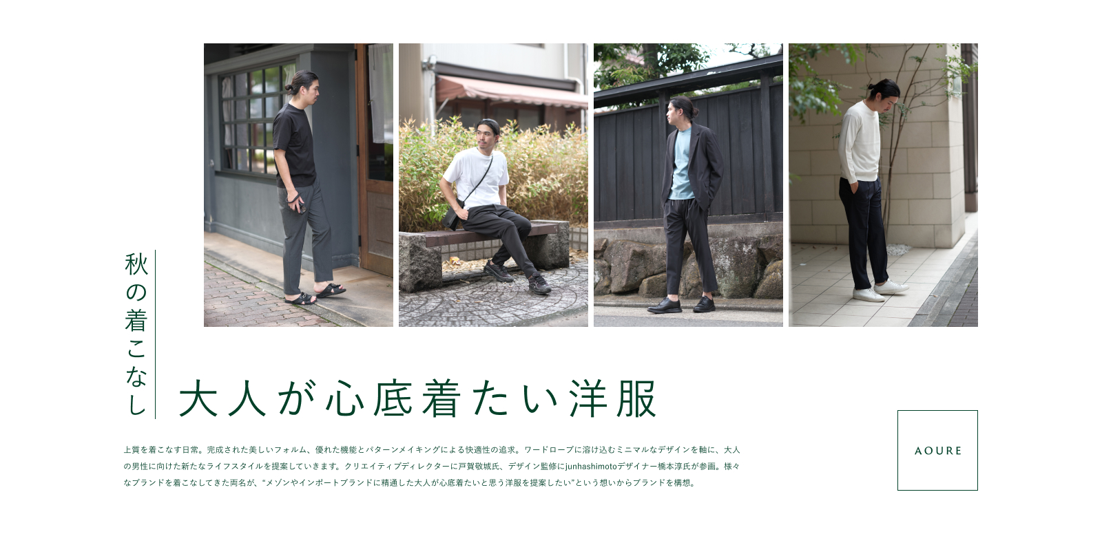 大人が心底着たい洋服AOURE(アウール)。ブランド紹介と共に、アウールのアイテムを取り入れたおすすめ秋コーデを4つご紹介いたします。
