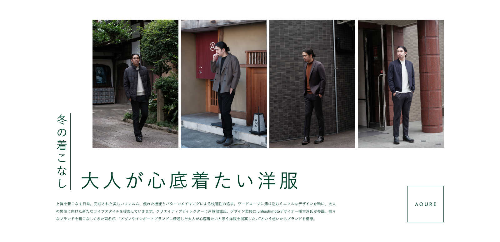 大人が心底着たい洋服AOURE(アウール)。ブランド紹介と共に、アウールのアイテムを取り入れたおすすめ冬コーデを4つご紹介いたします。