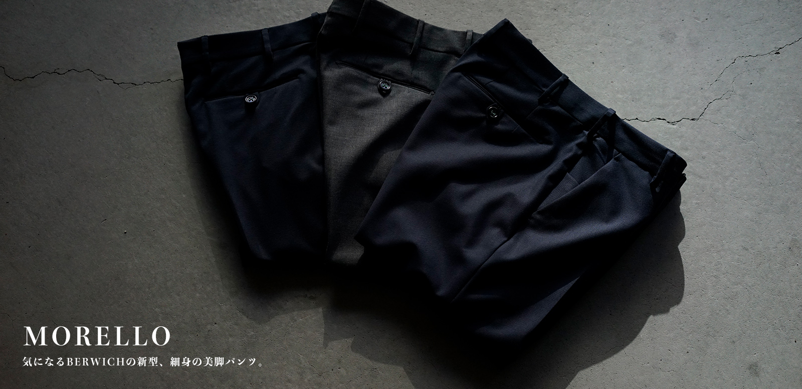 気になるBERWICHの新型、細身の美脚パンツ。