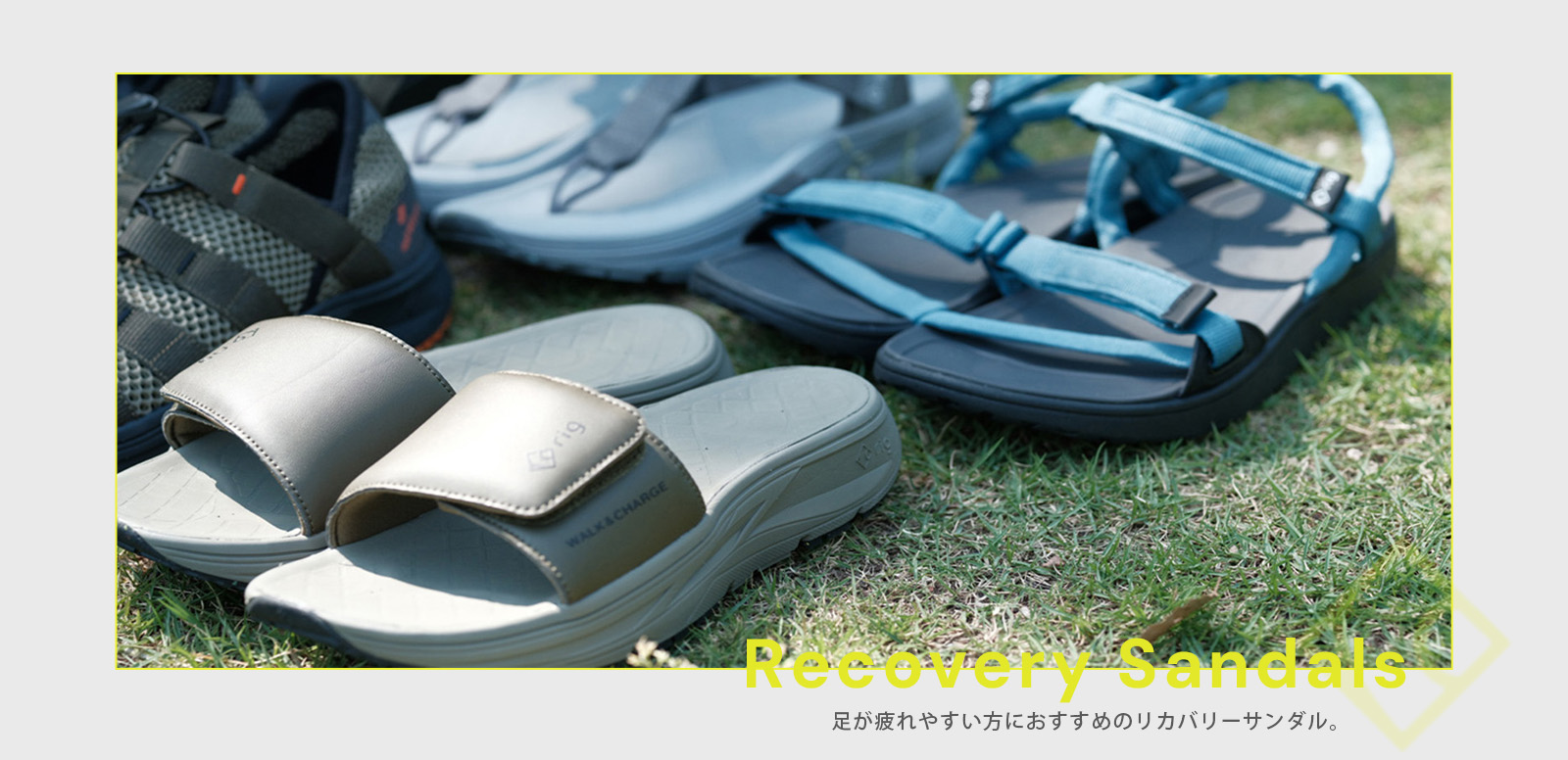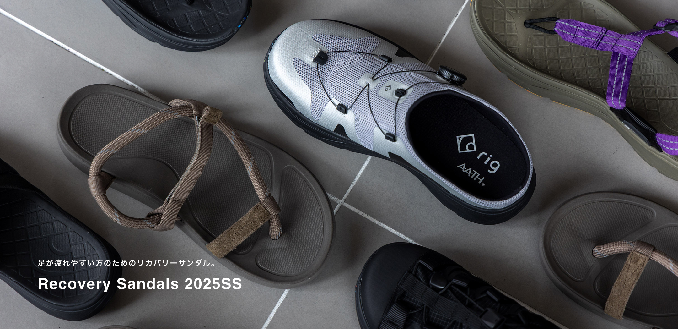 rig footwearのリカバリーサンダルをご紹介いたします。足が疲れやすい方、運動をする方、立ち仕事をする方、旅行などで長時間歩く方、足の負担を軽減したい方におすすめです。