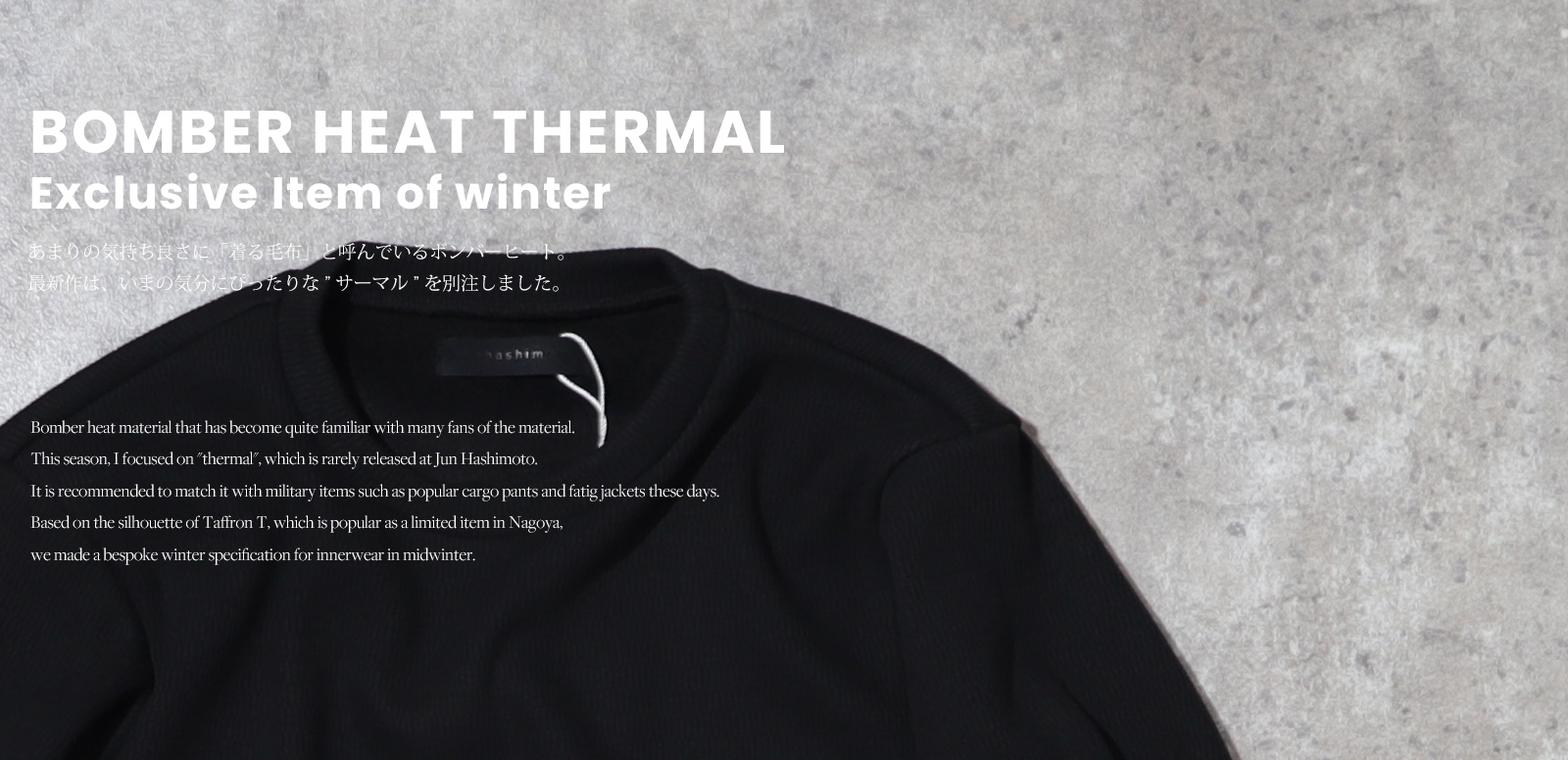 junhashimoto 20AW【別注】BOMBERHEAT CREW L/S