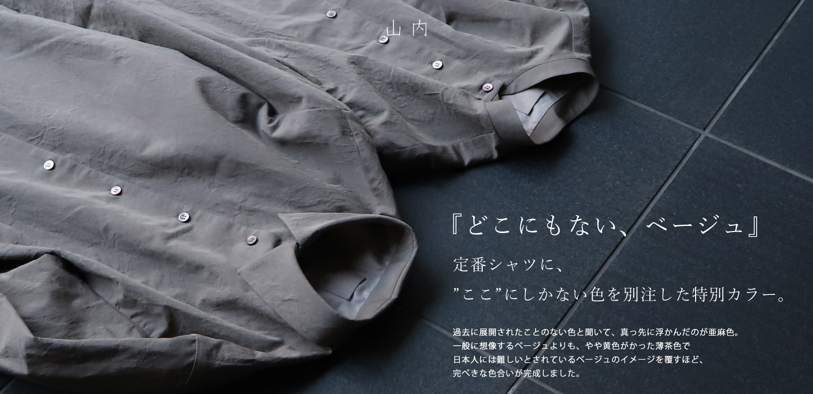 素材は定番ながらカタチは新鮮。パッと見はとてもシンプルな白シャツ。言い換えればフツウの白シャツに見えますが、強い拘りを詰め込んでいます。