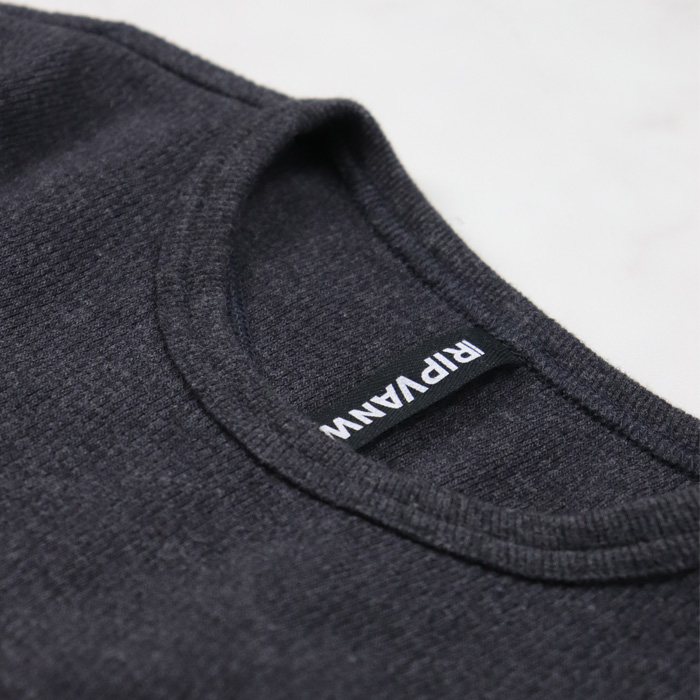 そんなイメージが強い中で出会った今回の「ハイパワーストレッチサーマル」コレクションラインでは変形のヘンリーネックで展開されていますが、当店ではヘンリーネック部分のデザインを削ぎ落したド直球のサーマルカットソーというカタチで別注リクエスト。(いわゆるプチ別注というやつです。) - 新鮮味を選ぶならデザイン性があったほうが良かったのですが、来年も再来年、、気づいたら5年くらい着ている。そんなアイテムになって欲しくて敢えてシンプルなデザインをリクエストしました。