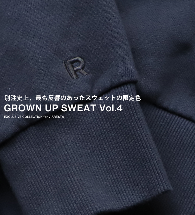 - GROWN UP SWEAT=大人が着れるスウェットをコンセプトのもと、
