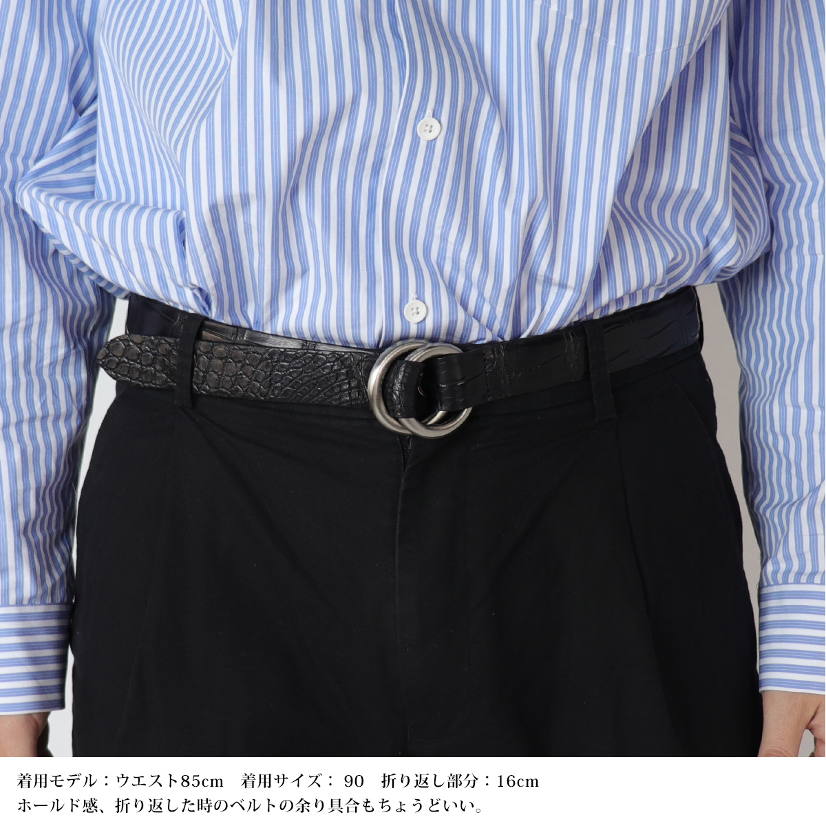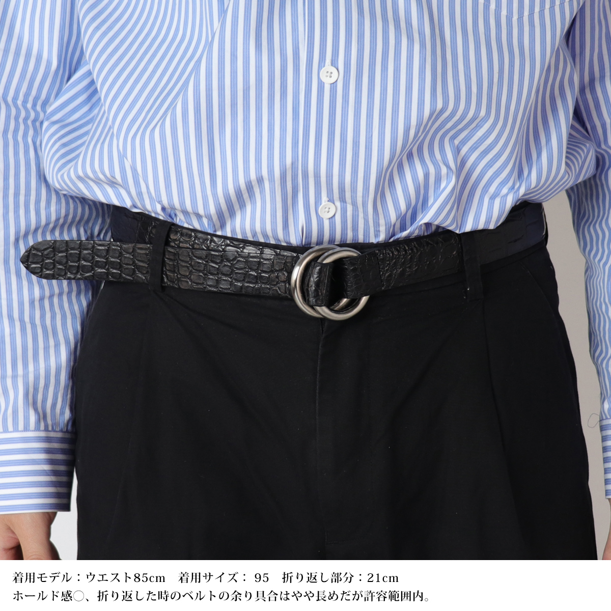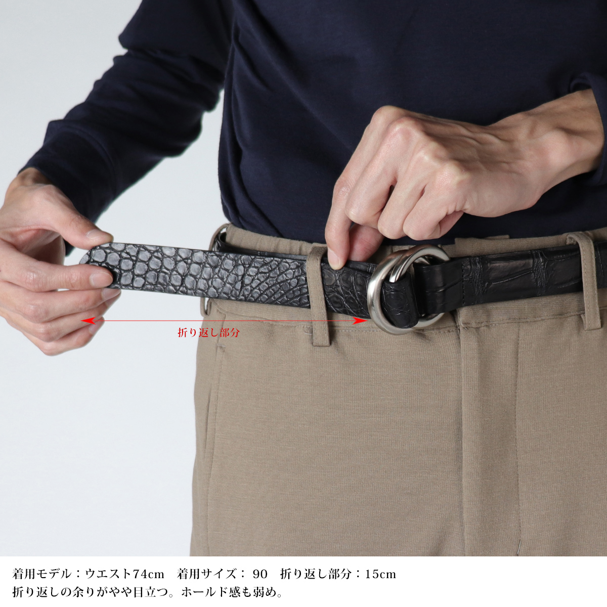 ハイクラスな革(クロコダイル)とこだわり抜いた仕上げだからこそ、スーツ、ウールパンツ、デニム、コットンパンツ、ショーツまでフォーマル以外なら、コーディネートを選ばずに本当に革の良さを感じることのできるベルトが実現しました。