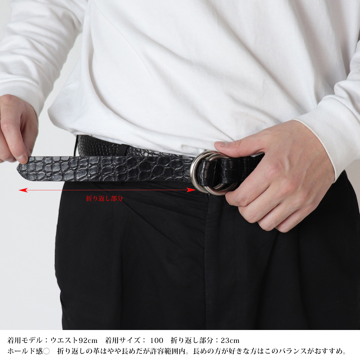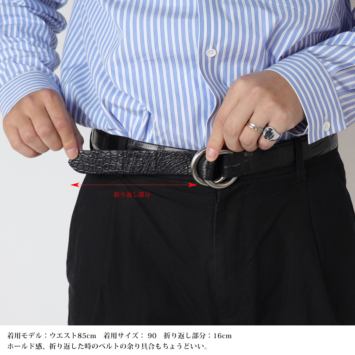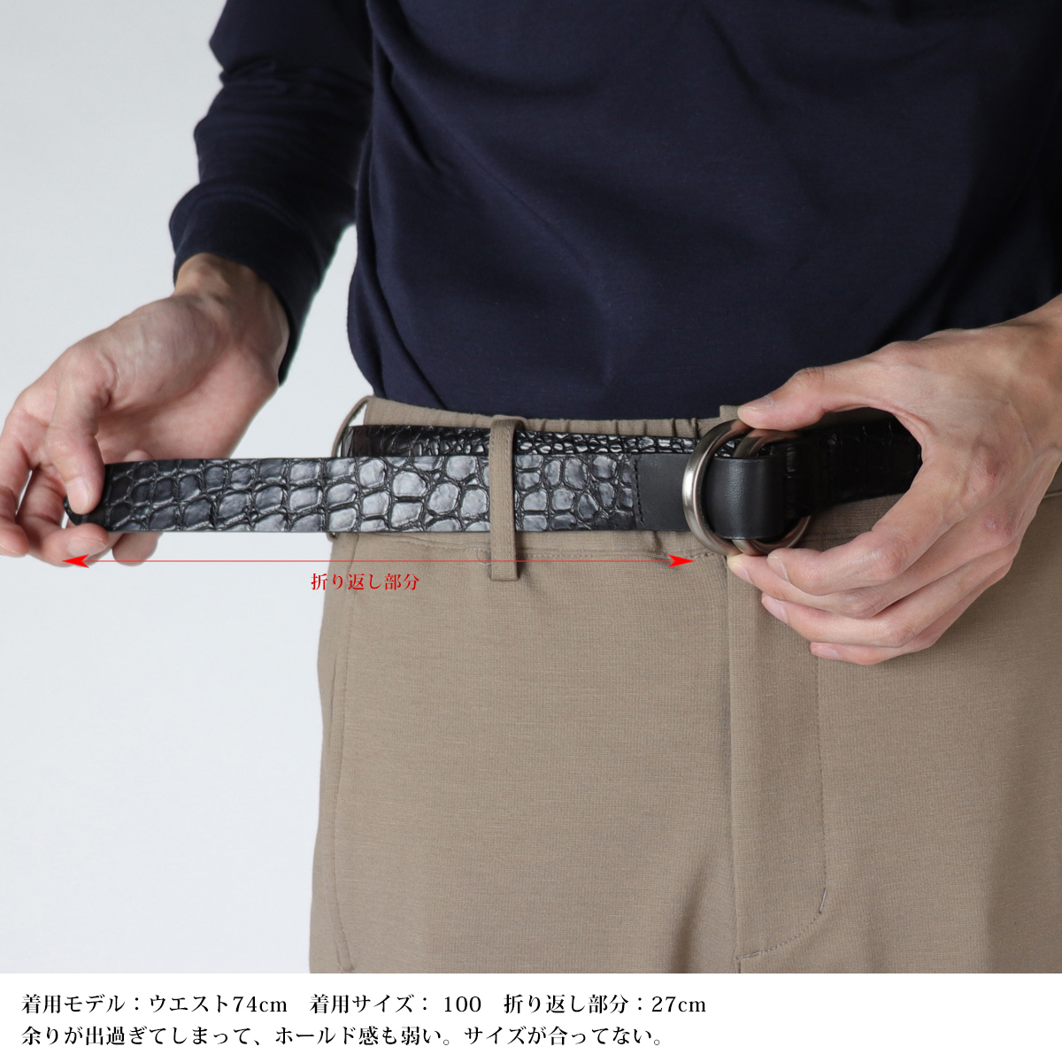 ハイクラスな革(クロコダイル)とこだわり抜いた仕上げだからこそ、スーツ、ウールパンツ、デニム、コットンパンツ、ショーツまでフォーマル以外なら、コーディネートを選ばずに本当に革の良さを感じることのできるベルトが実現しました。