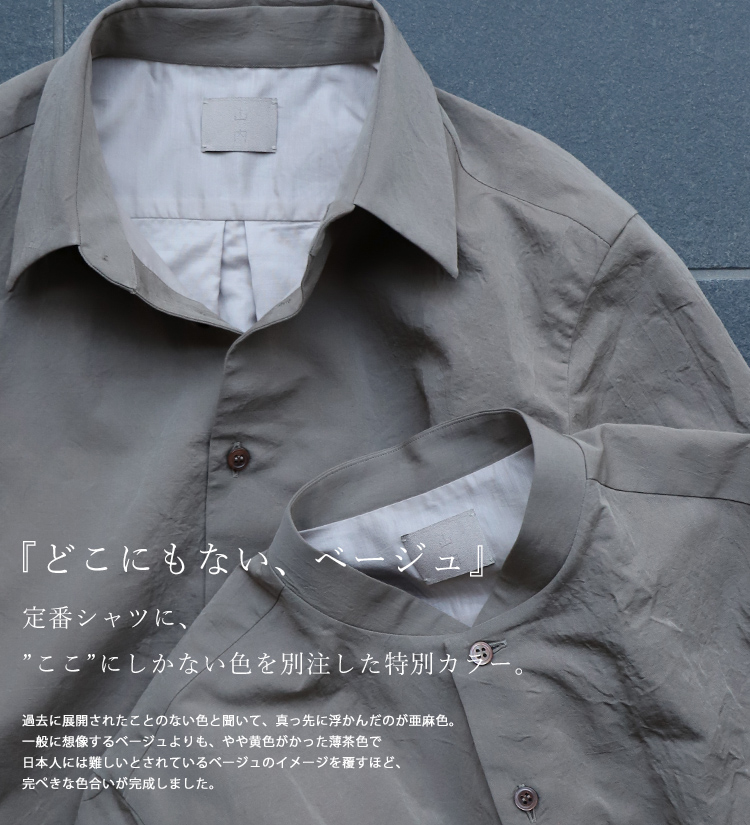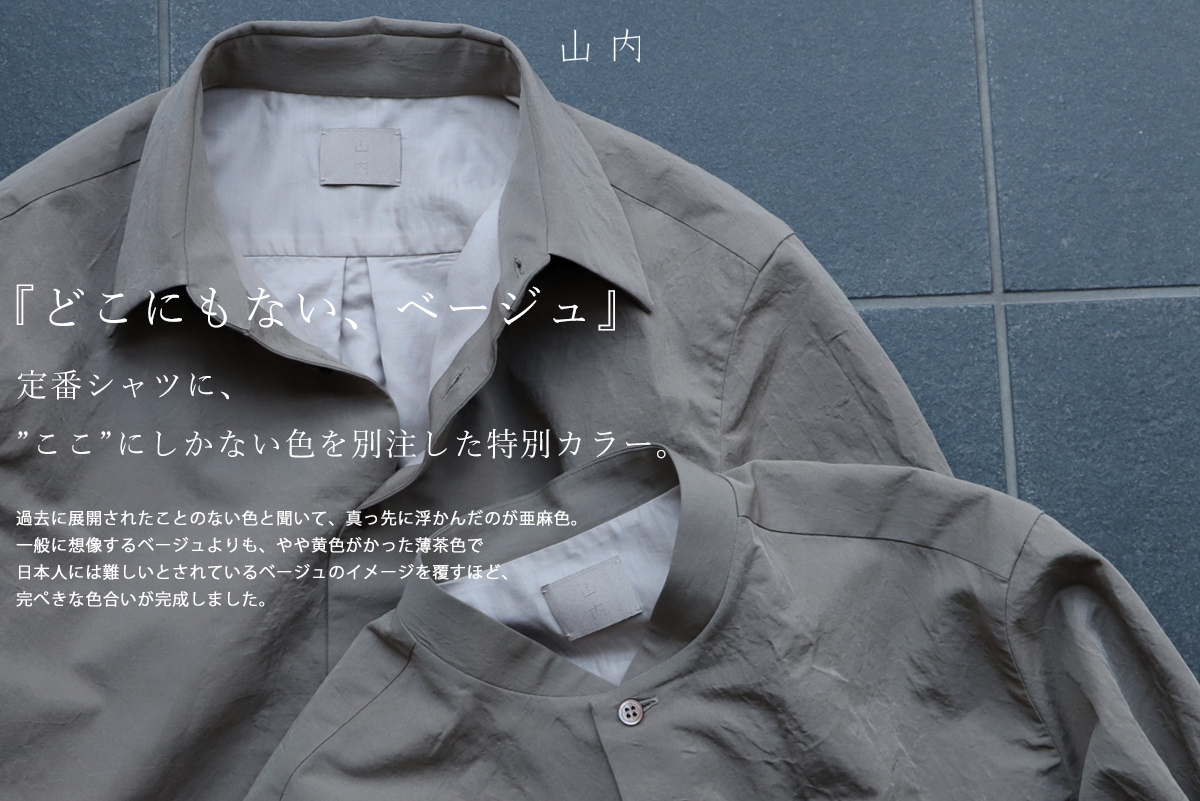 - 山内と言えばシャツ。シャツと言えば有松塩縮加工コットンリネンシャツ。