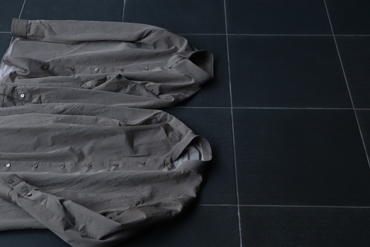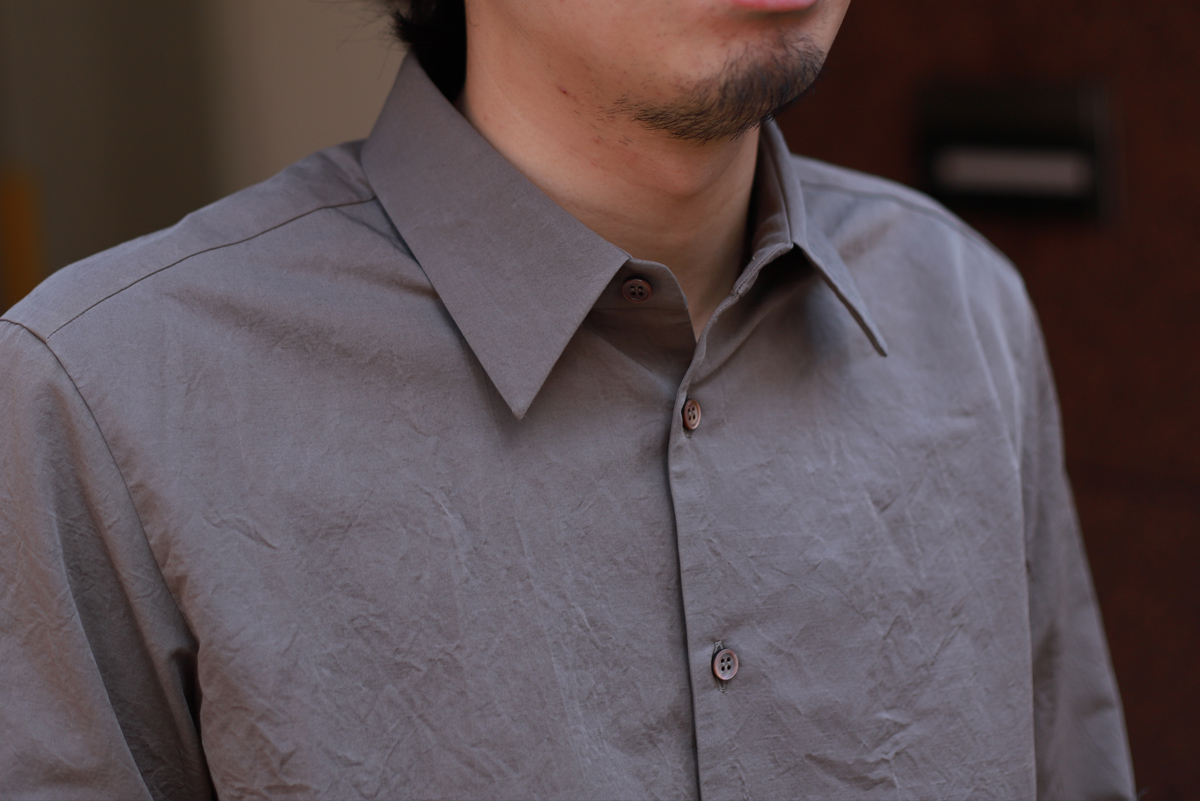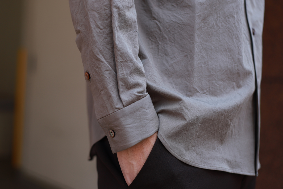 決してタイトなフィッティングではないのですが、着用した時のシルエットバランスが非常に美しいいのが山内のシャツの特徴。