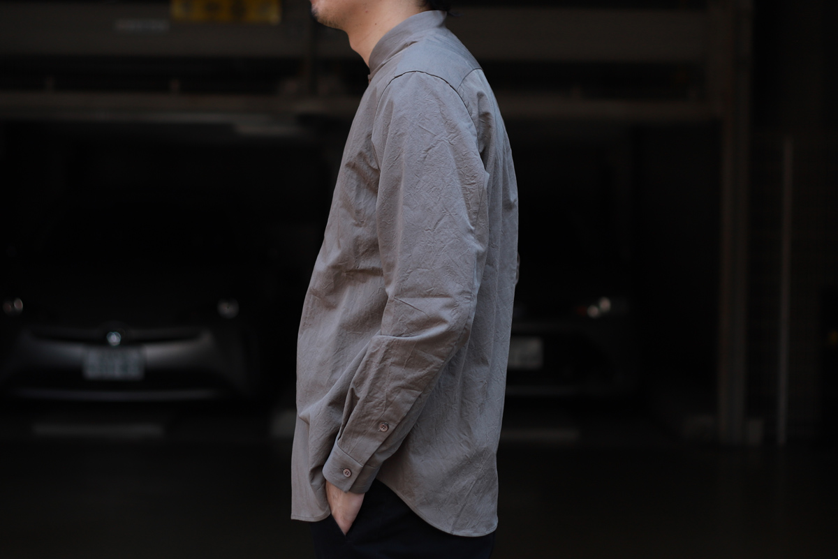 - 21AWモデルとして、6月に先行でリリースさせて頂いたフリーカットポンチ素材のロンTに続いて21AW別注第二弾となるのは「有松塩縮加工コットンリネンシャツ」