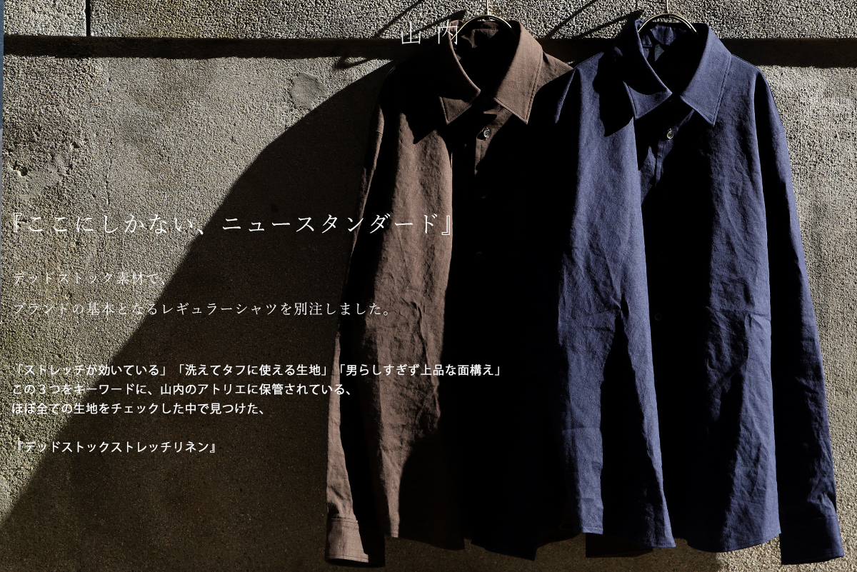 - 山内を代表するシャツと言えば、「塩縮リネンシャツ」ですが、