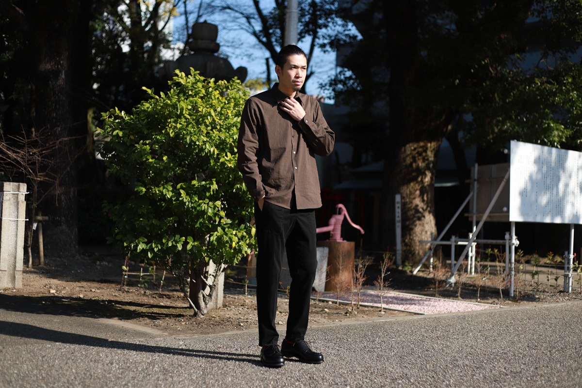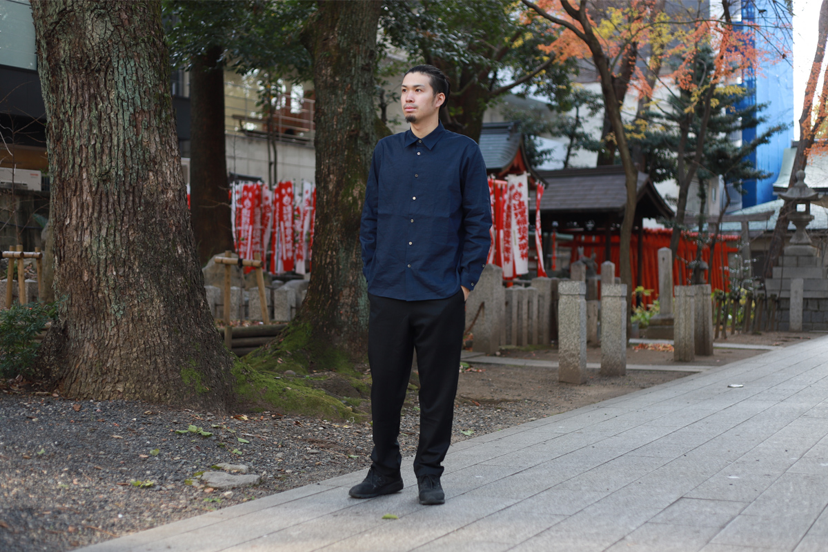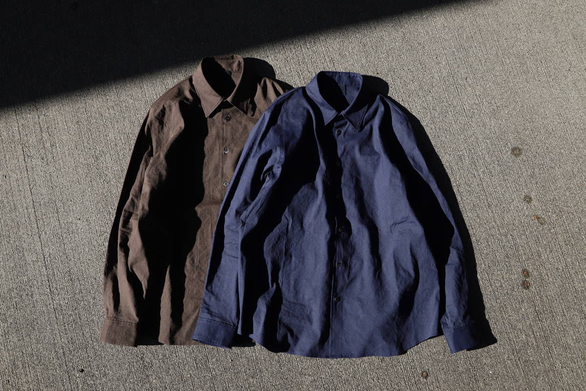 - 一社(名古屋市)にあるアトリエにお伺いさせて頂き、山内さんと直接お話しをさせて頂きながら決まった今回の別注リネンシャツ。