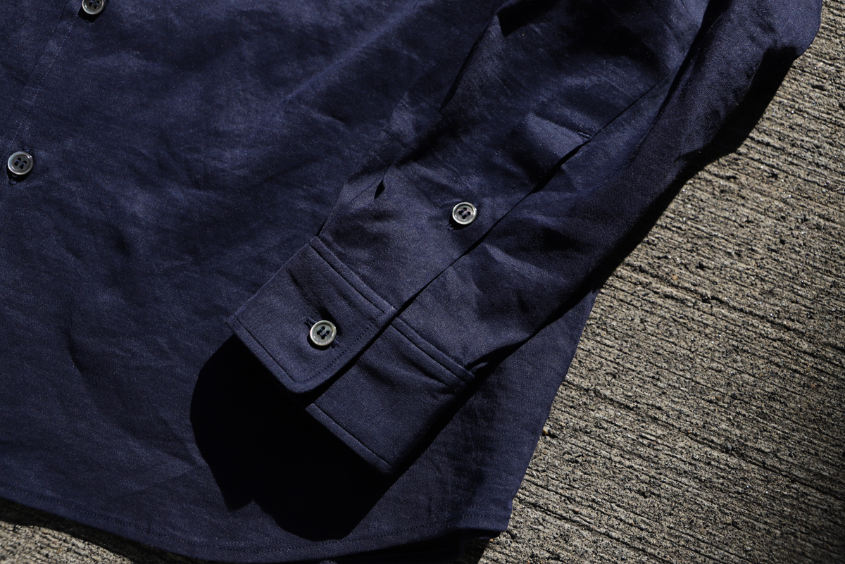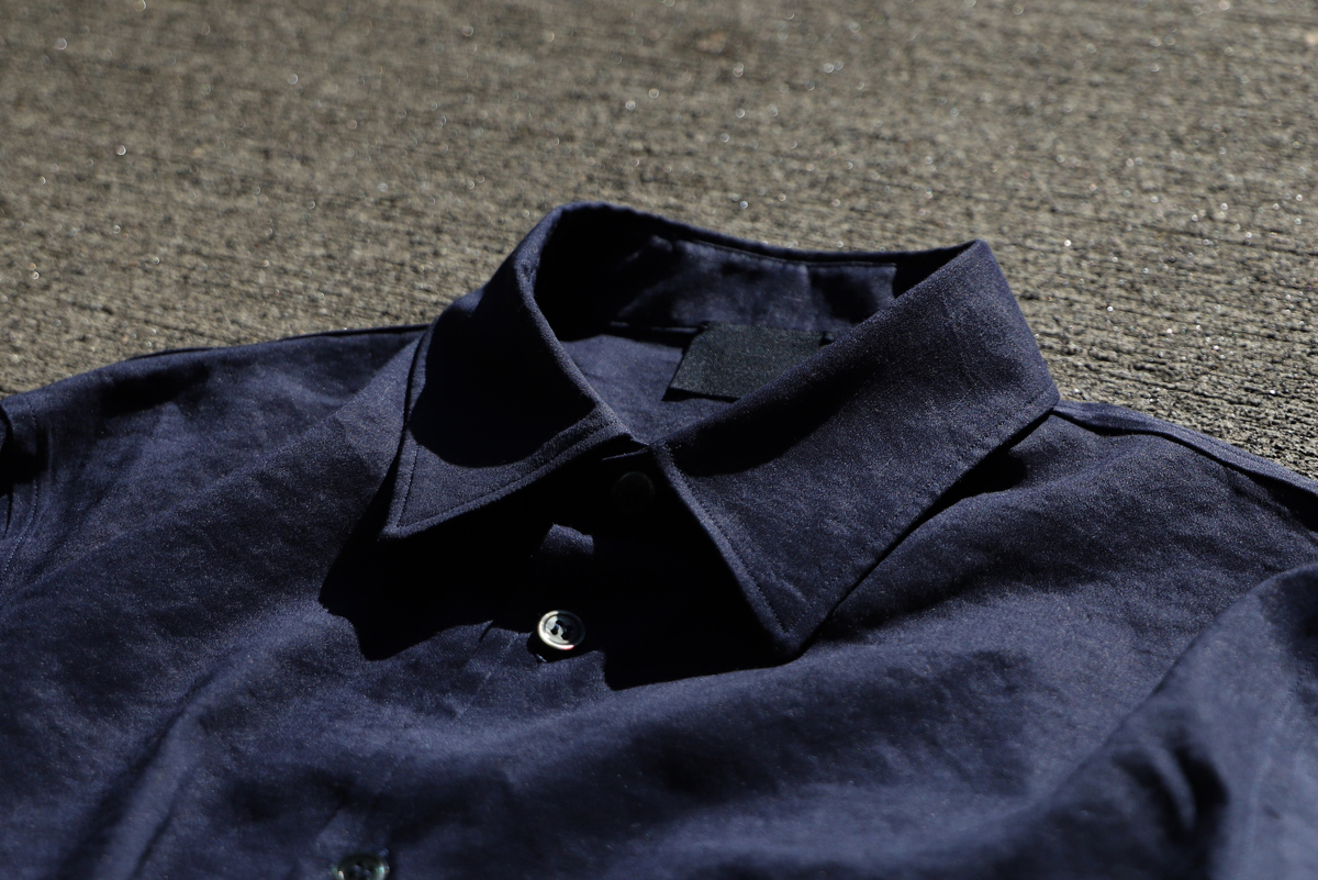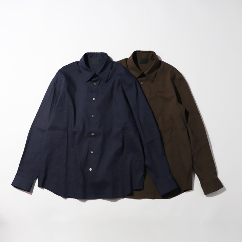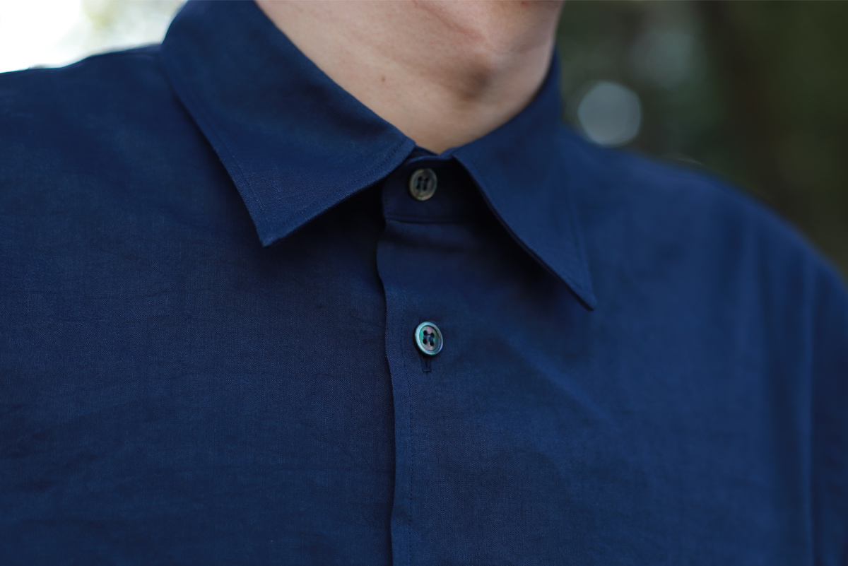 - 塩縮リネンシャツが裏地付きに対してこちらは一重(裏地なし)で仕上げていますので、その分リラックス感のあるフィッティングを感じて頂けます。