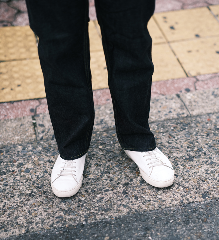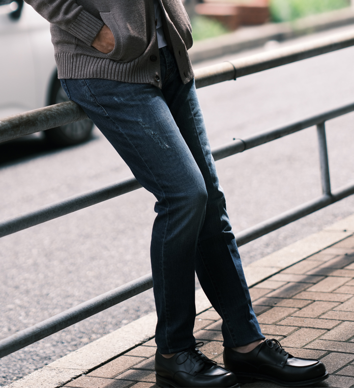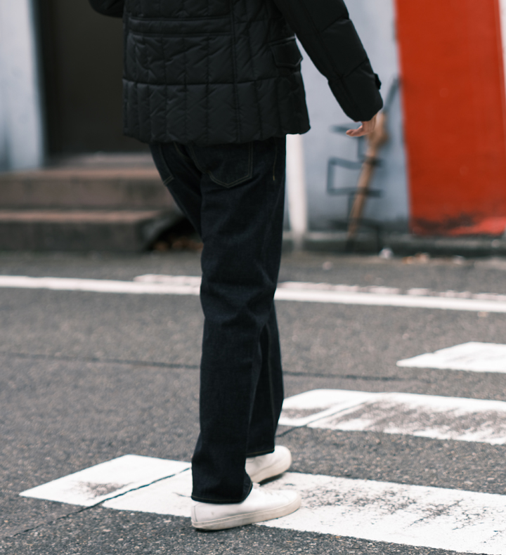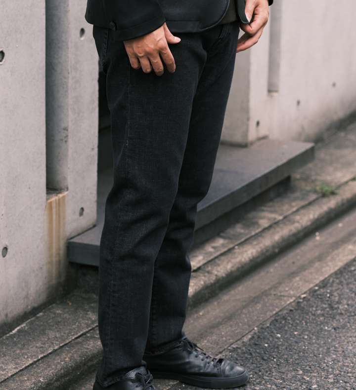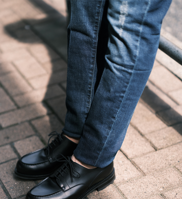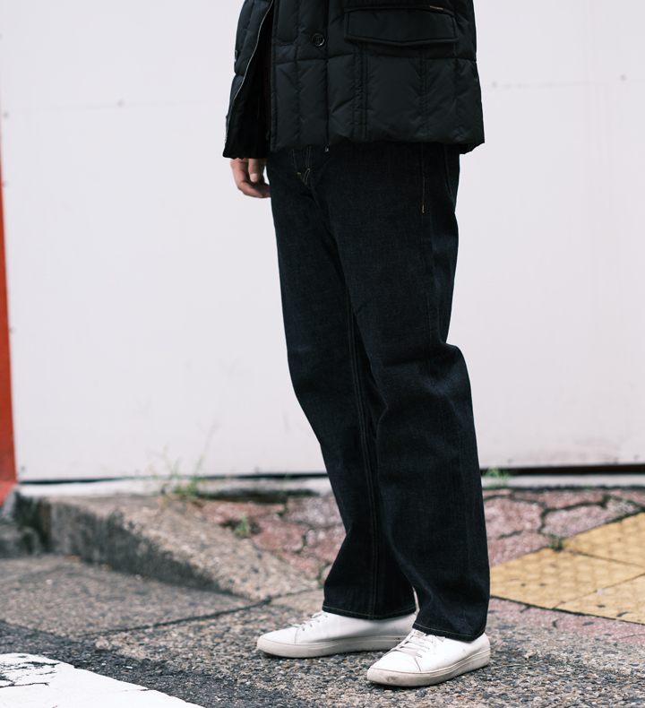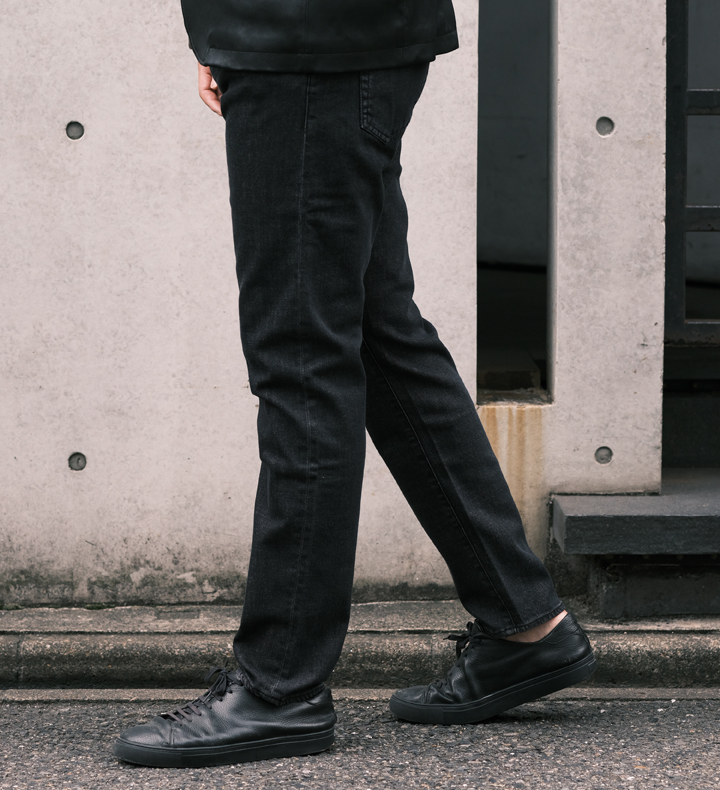 裾にかけてテーパードがかかっていて、穿き心地も抜群。きれいめからカジュアルまで合う万能デニム。