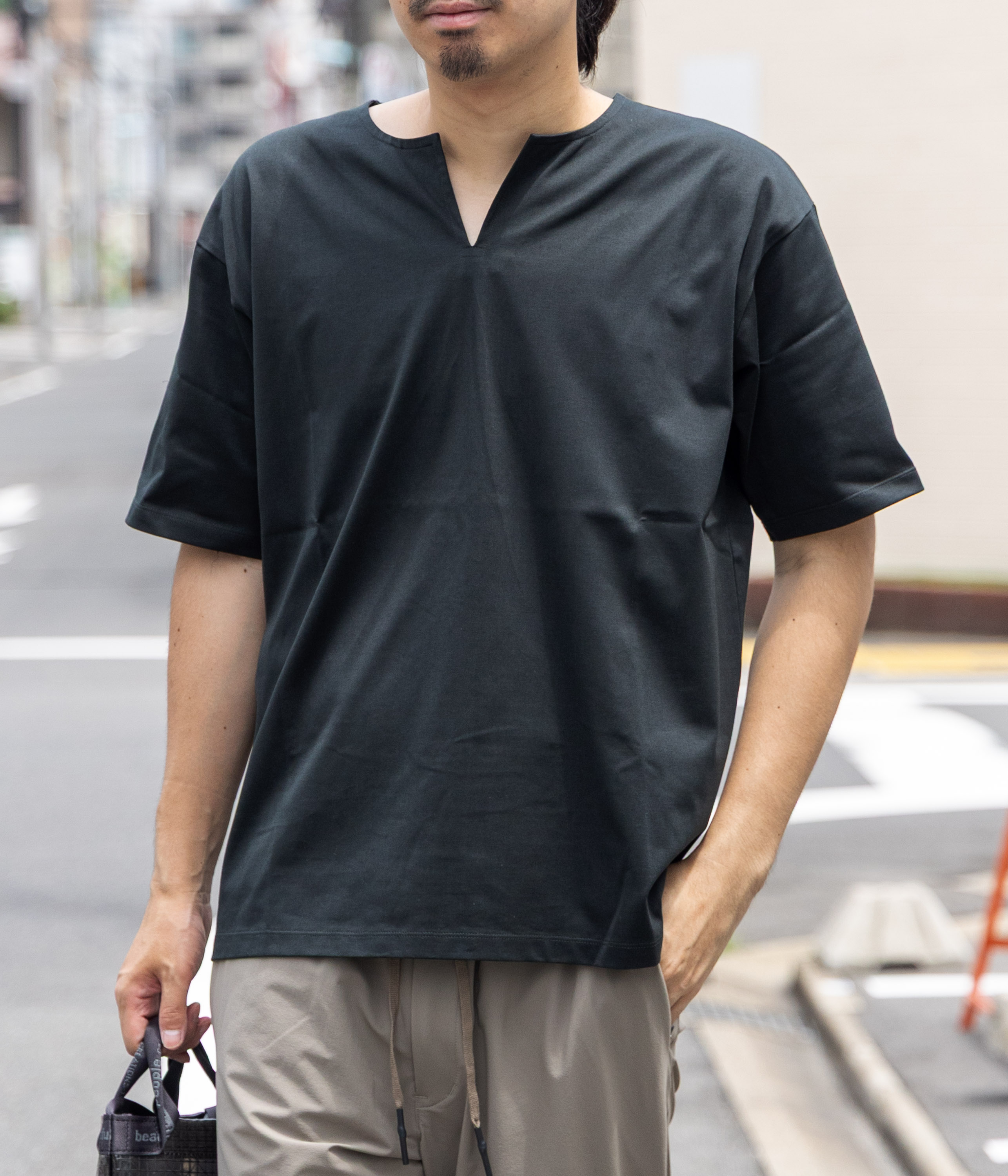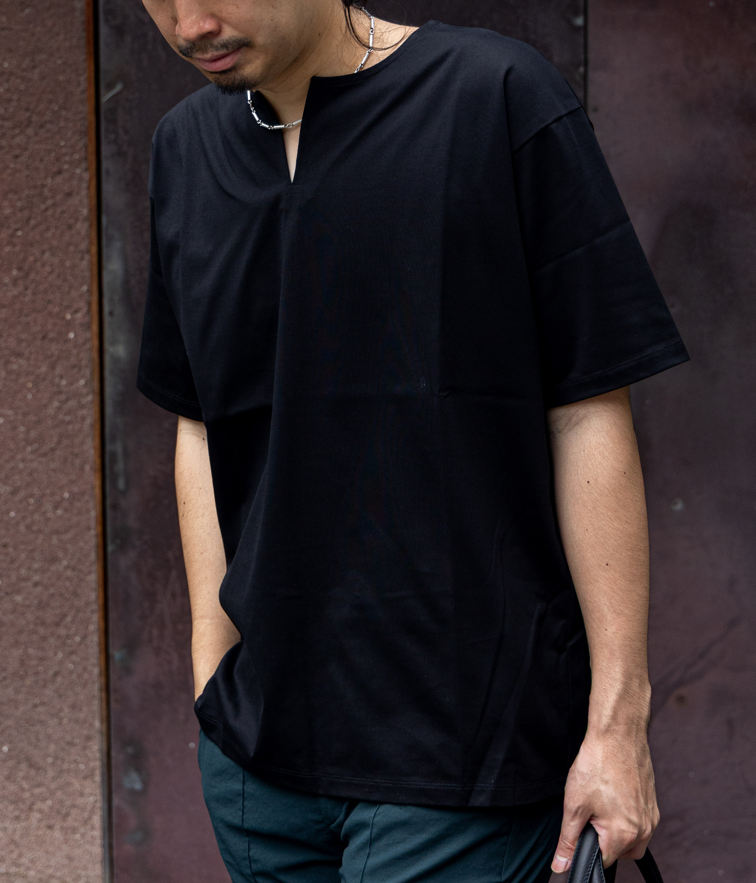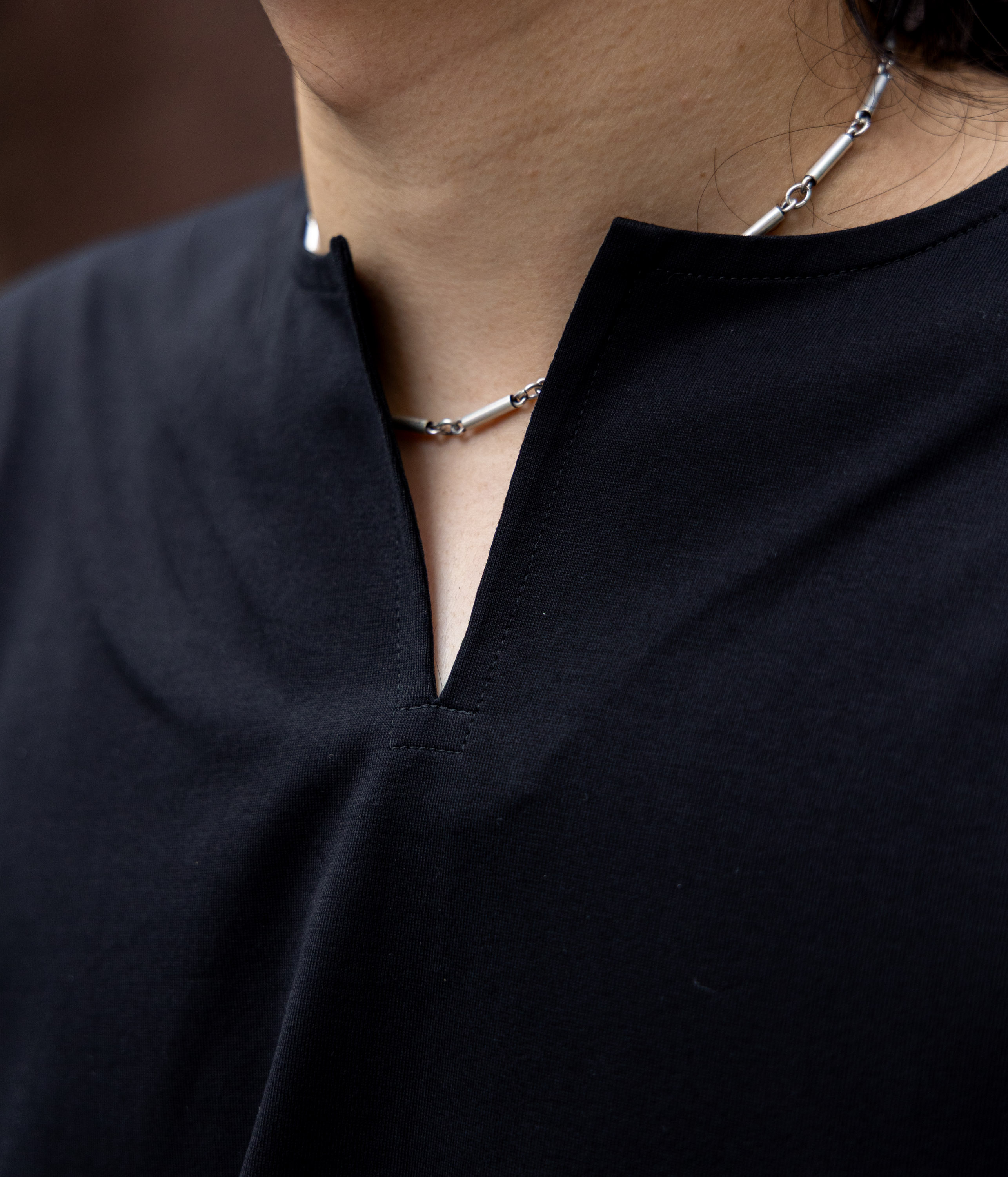 涼しげなスリットネックデザインは、大人の男性の色気を演出。