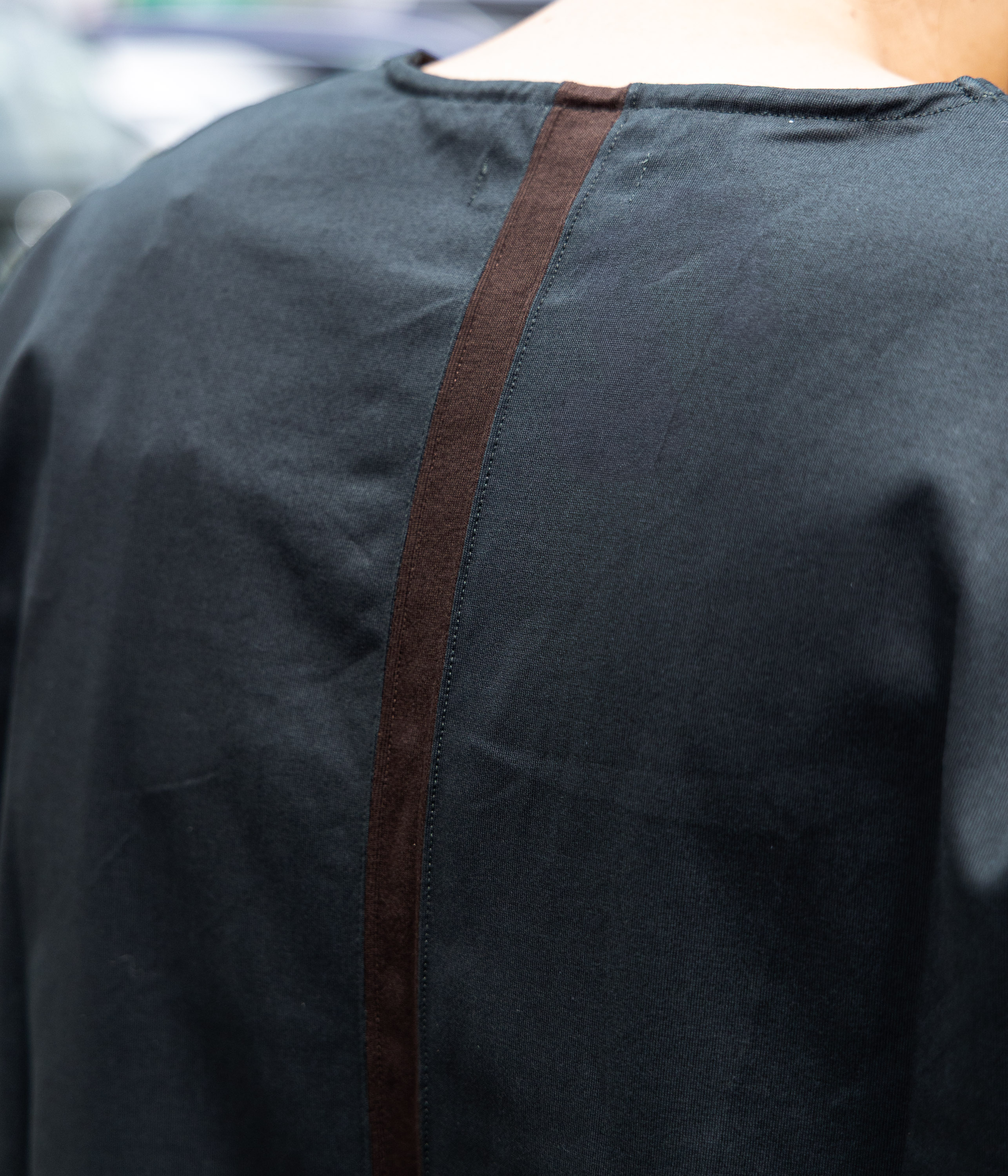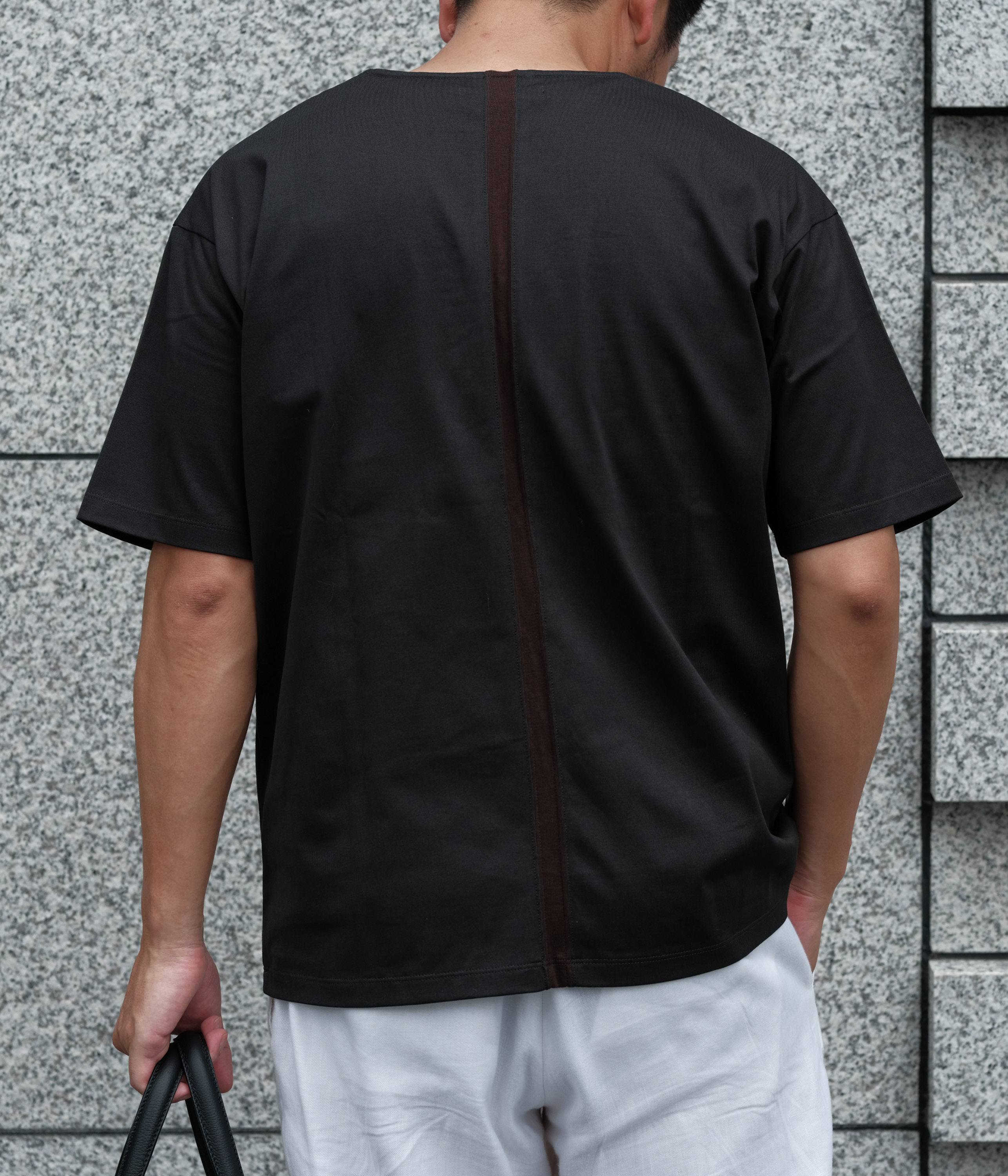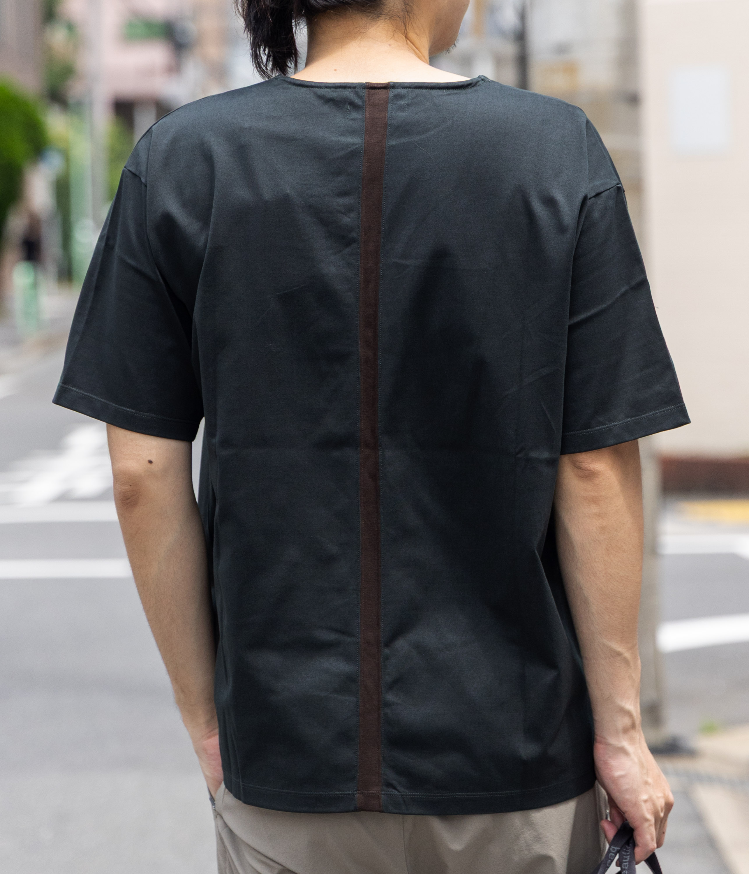 BLACKはTシャツ全体が同色ですが、D.GREENの背中リブ部分はダークブラウンにし、個性を加えました。