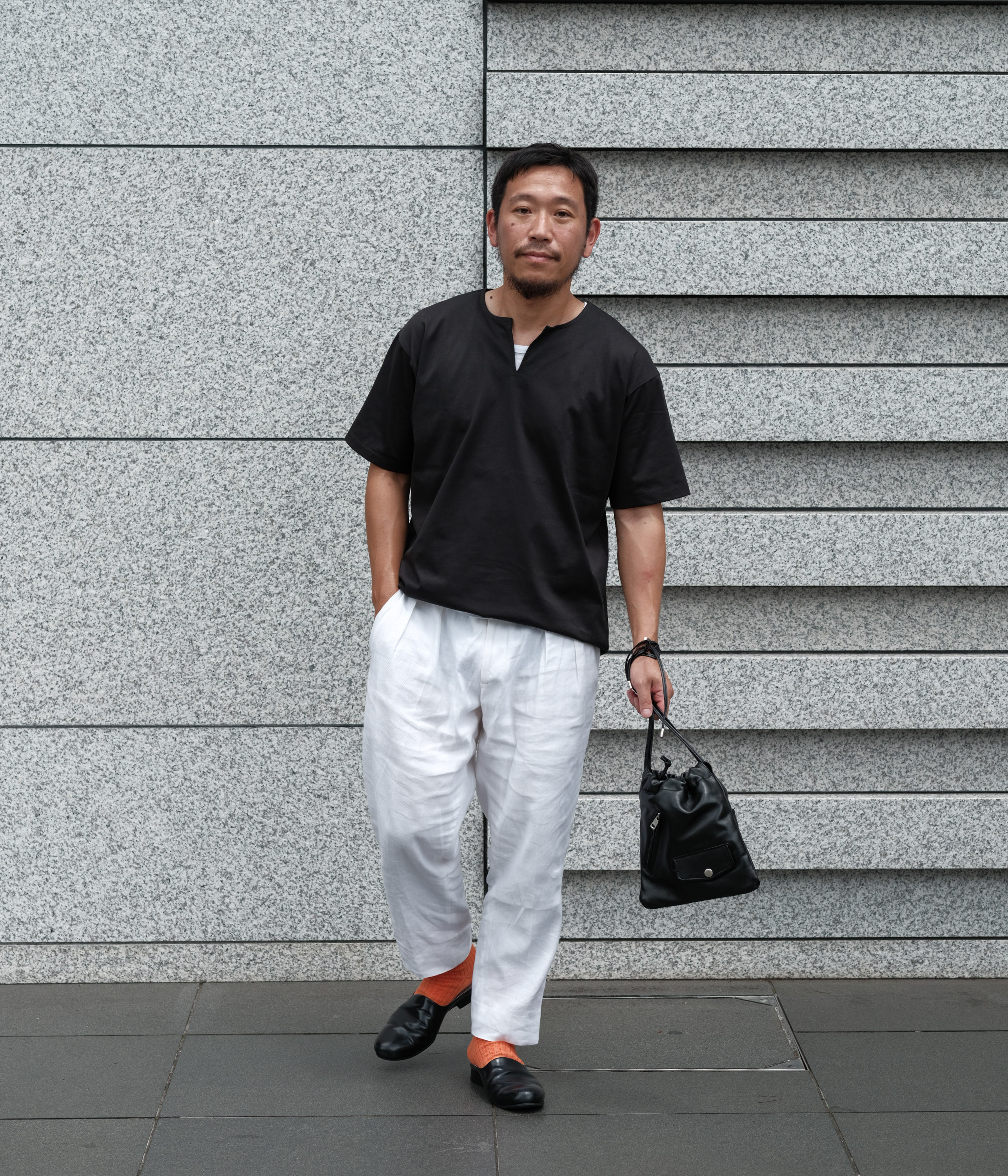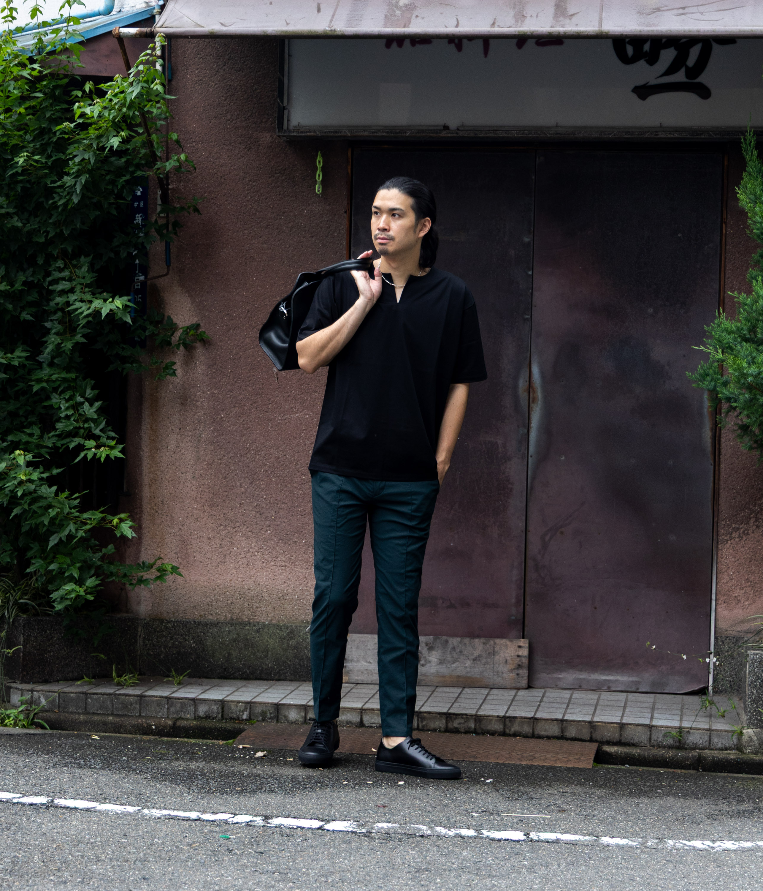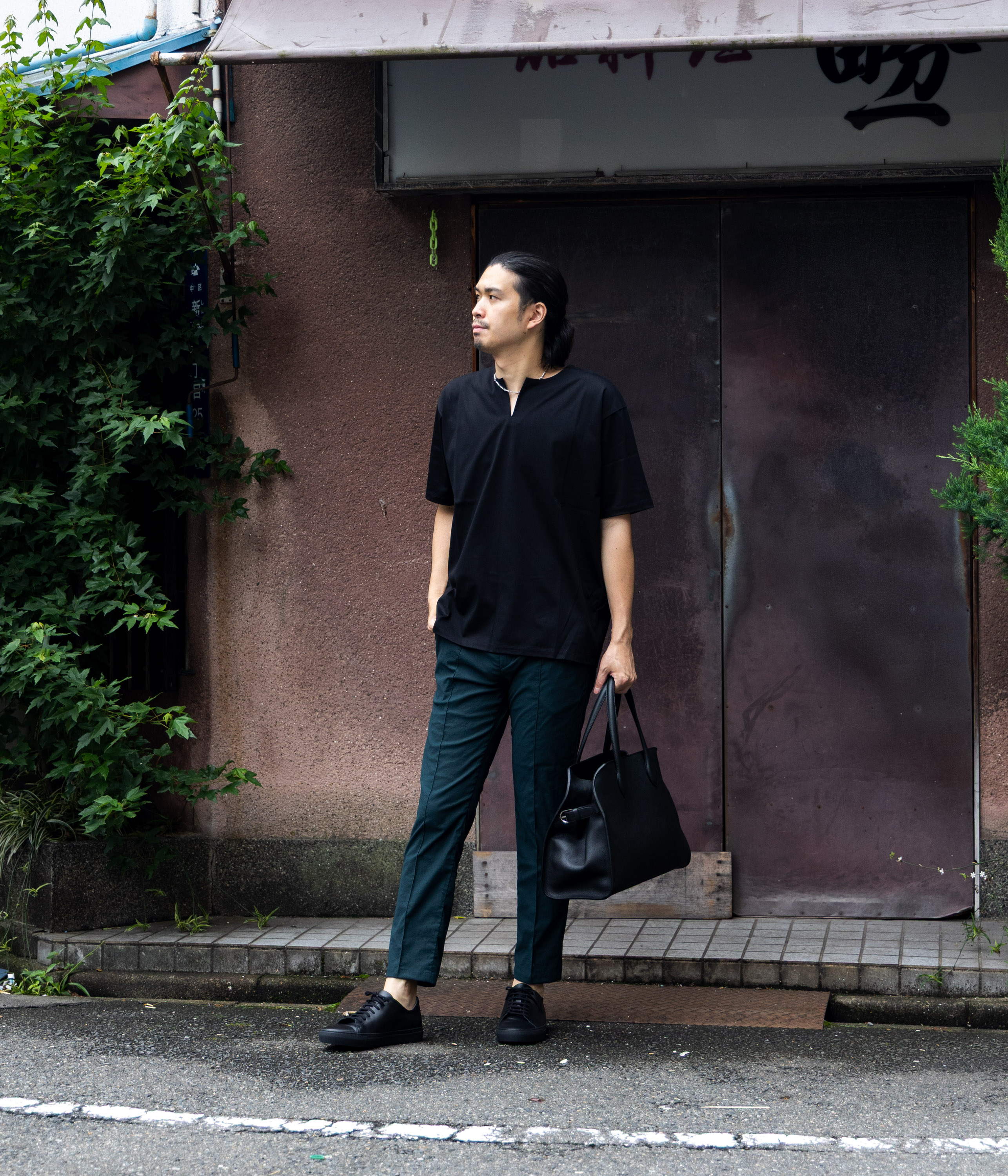 2年前に即完売したスリットTを改良し、夏の定番ワイドパンツやショーツにぴったり合うシルエットになるようこだわって製作しました。