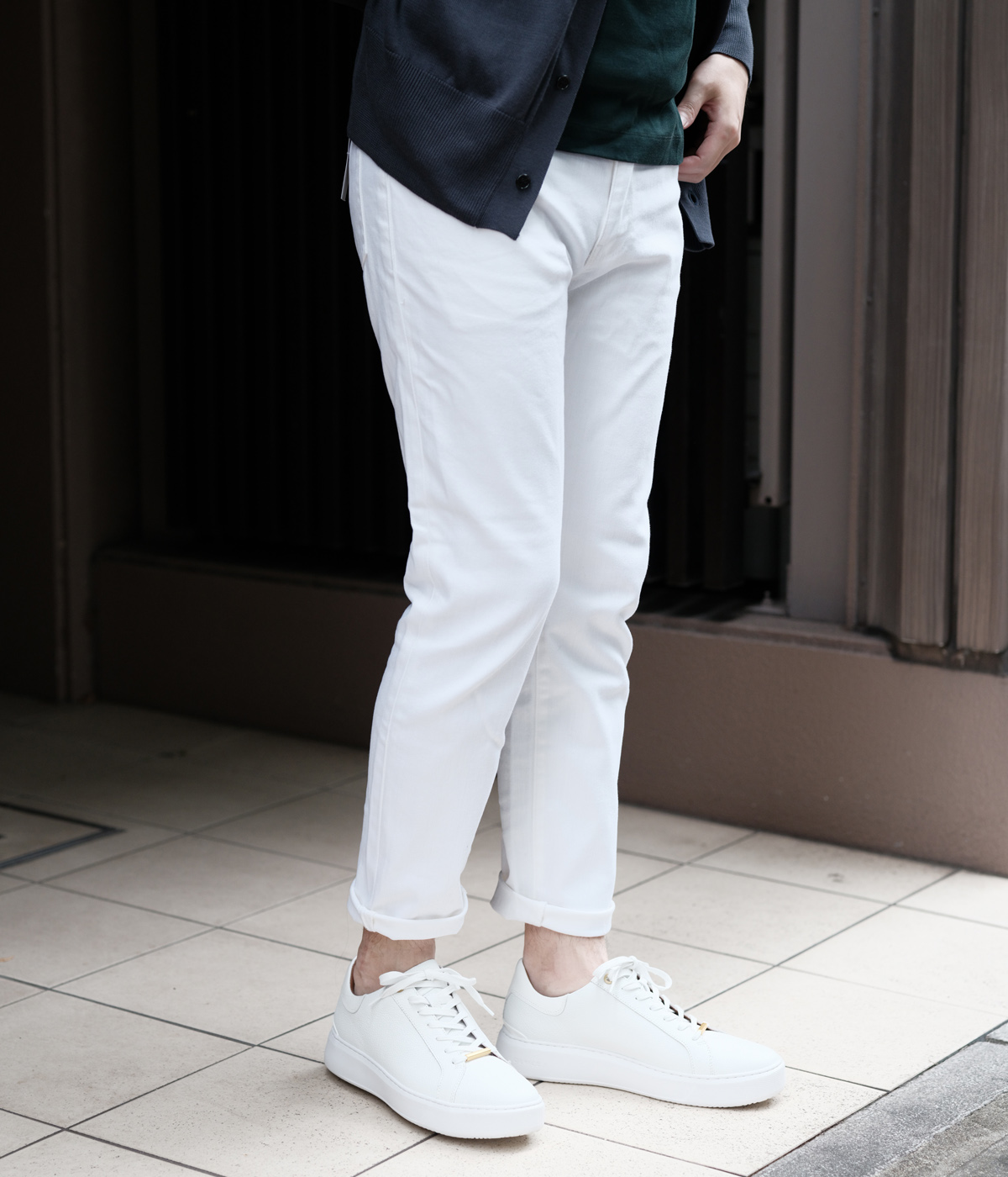 / AOUREデニムの良さを残しながら機能性を追求したホワイトデニム。撥水撥油加工による汚れに対する強さ、ストレッチ性に優れており着用時はストレスフリー。