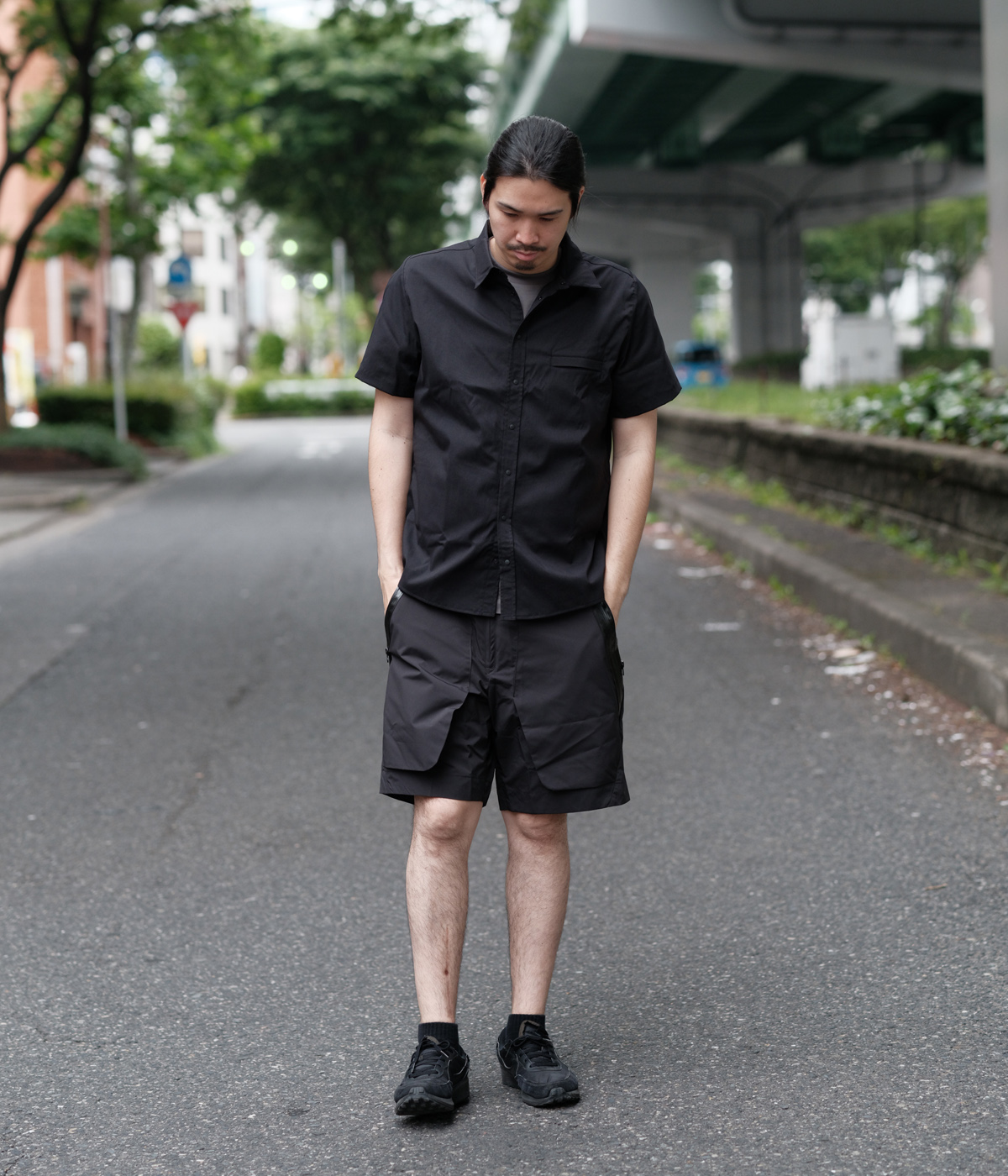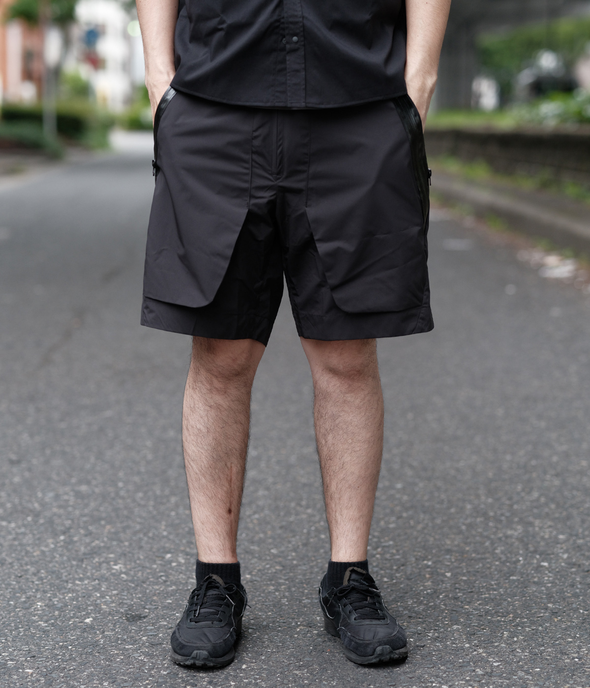 / CCP撥水素材を使用したイージーショーツ。前後に止水ファスナー付きポケットを配置し、立体的なデザインが特徴。